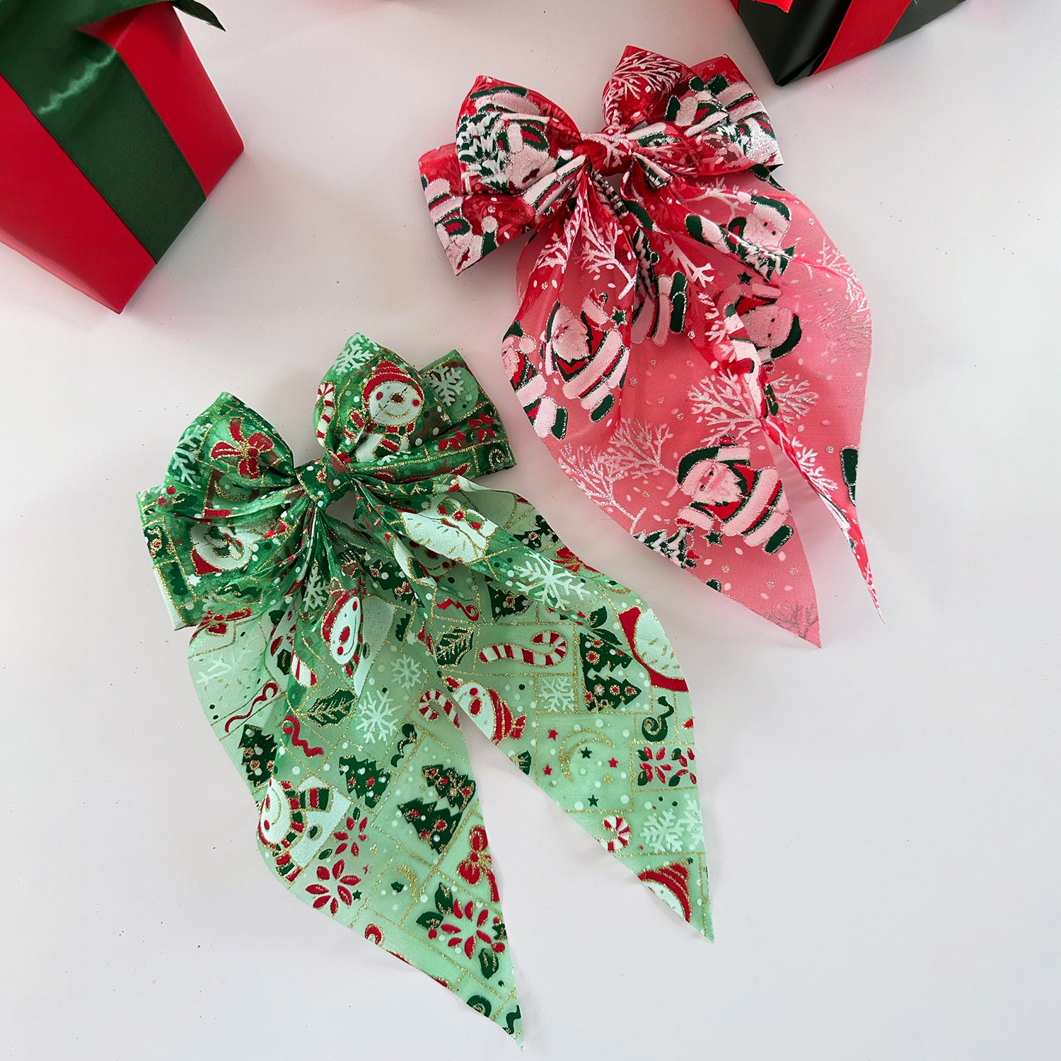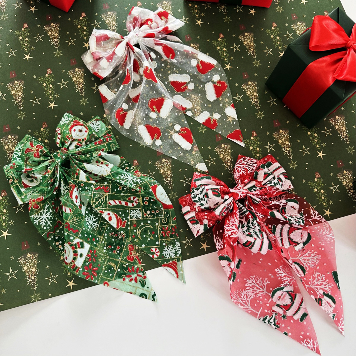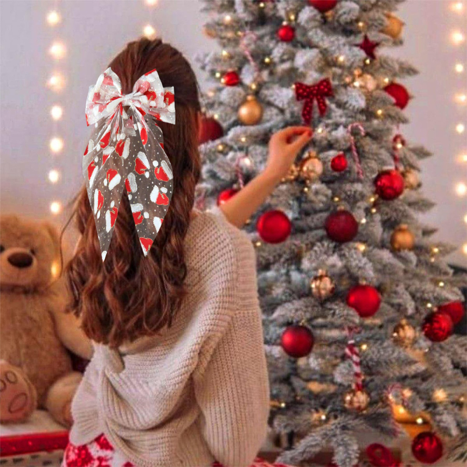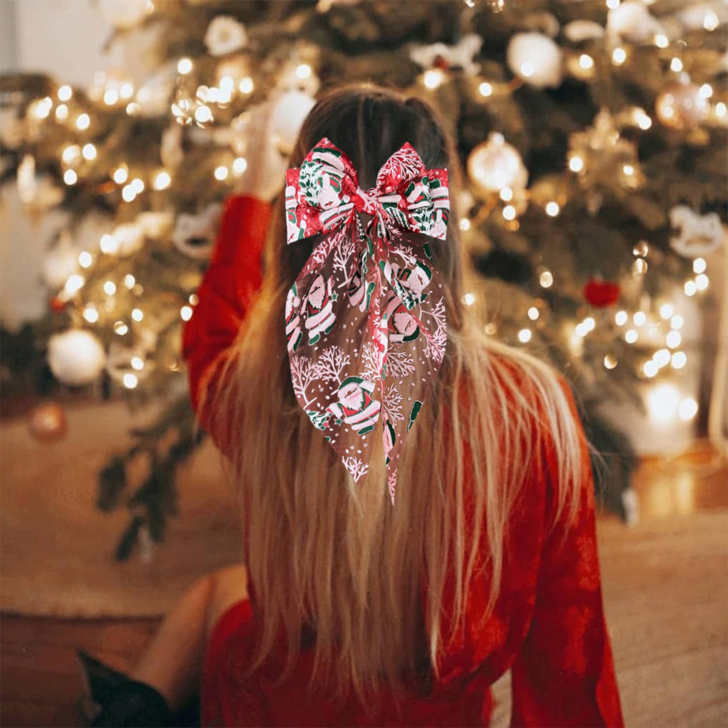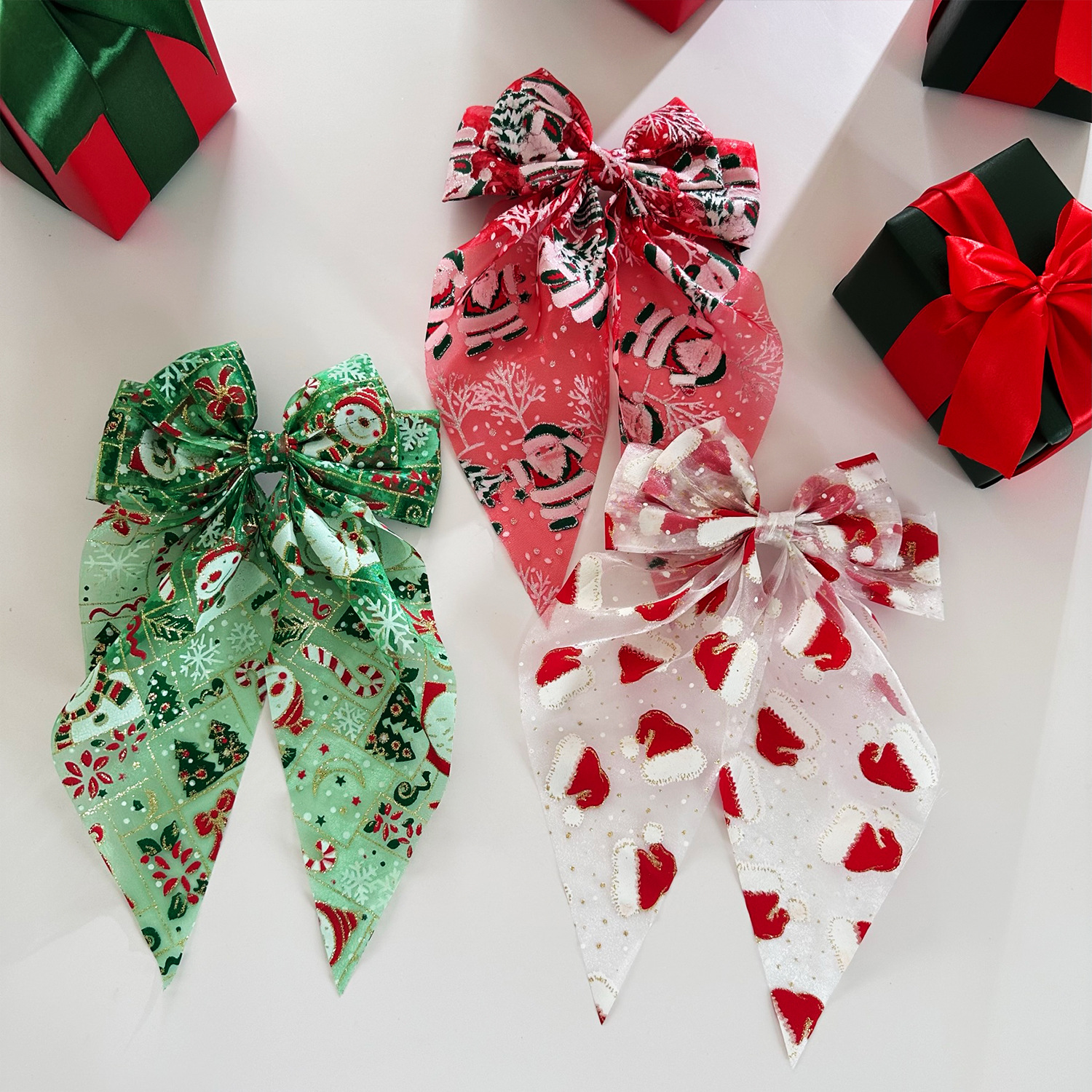 圣诞发饰圣诞帽网纱蝴蝶结弹簧夹雪人发夹节日礼物头饰