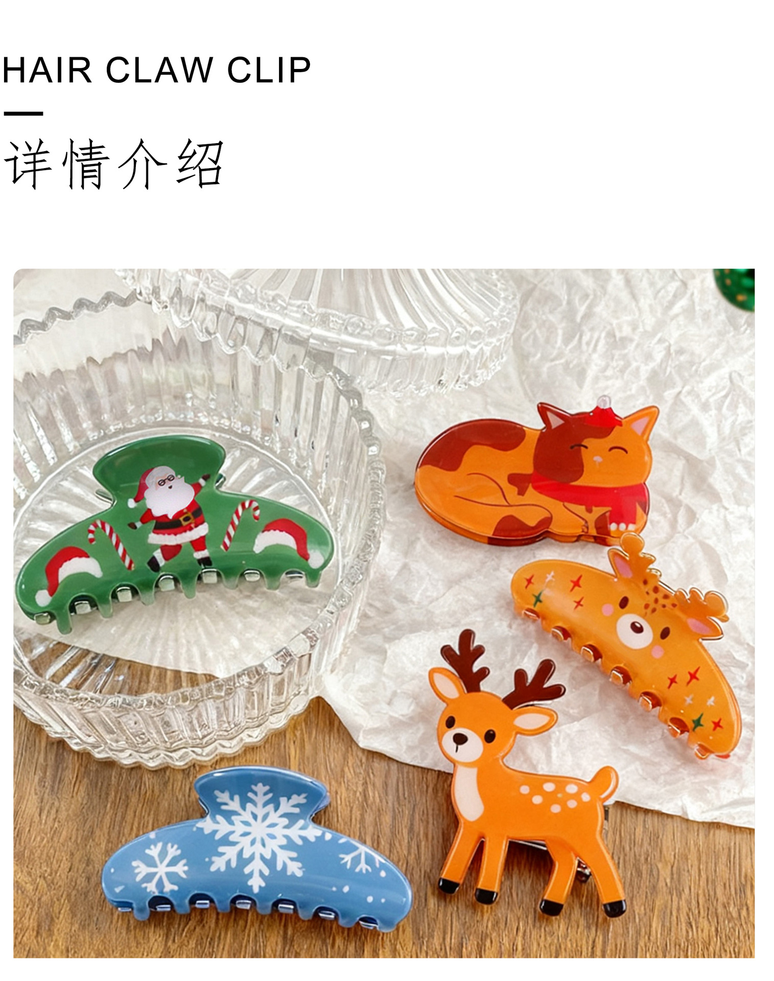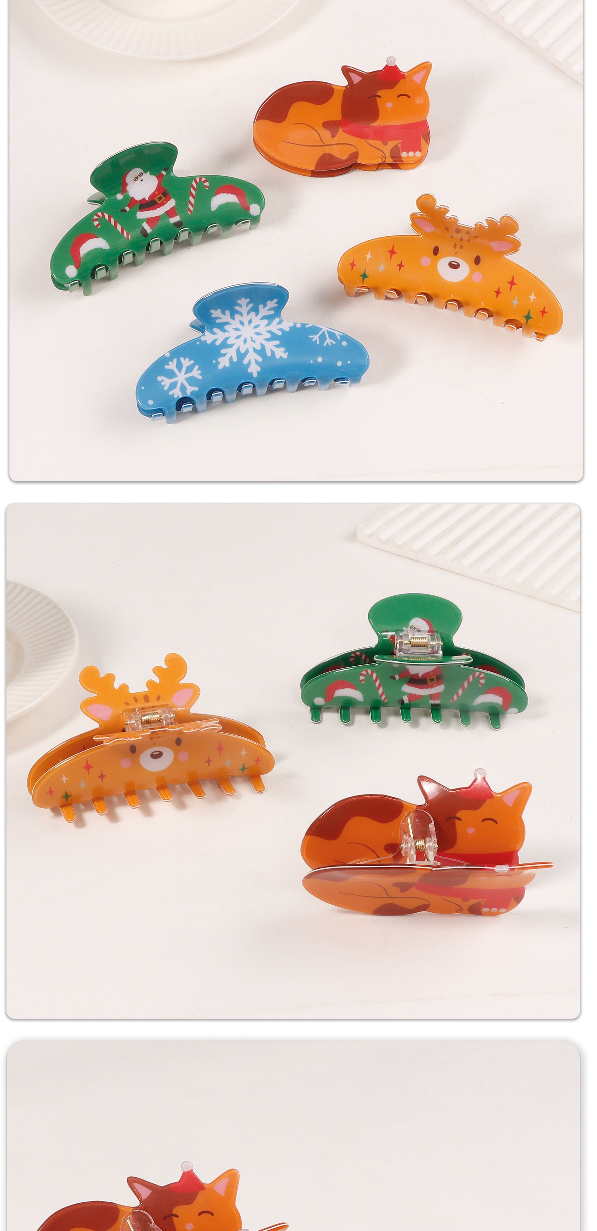 饰品圣诞节主题抓夹可爱猫咪雪花节日氛围发夹鲨鱼夹发饰女