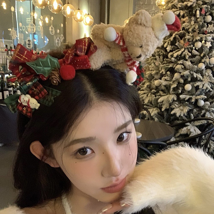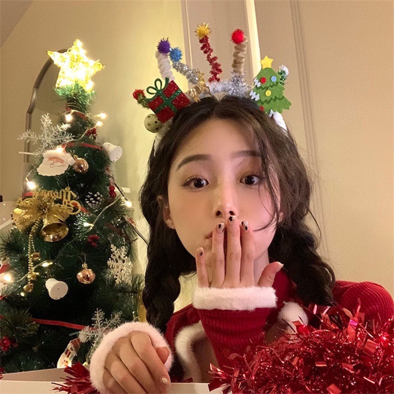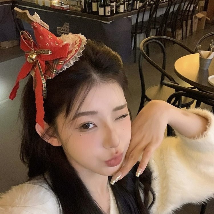 一起过圣诞叭可爱圣诞节帽子发箍女款毛绒发夹秋冬头箍发饰头饰品