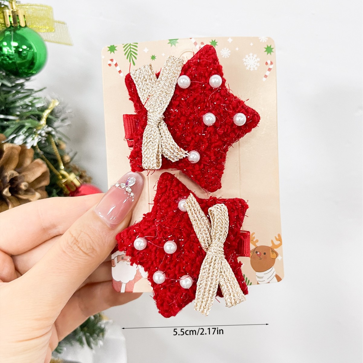 红色圣诞帽星星发夹头饰百搭鸭嘴夹节日氛围发卡侧边边夹发饰头饰