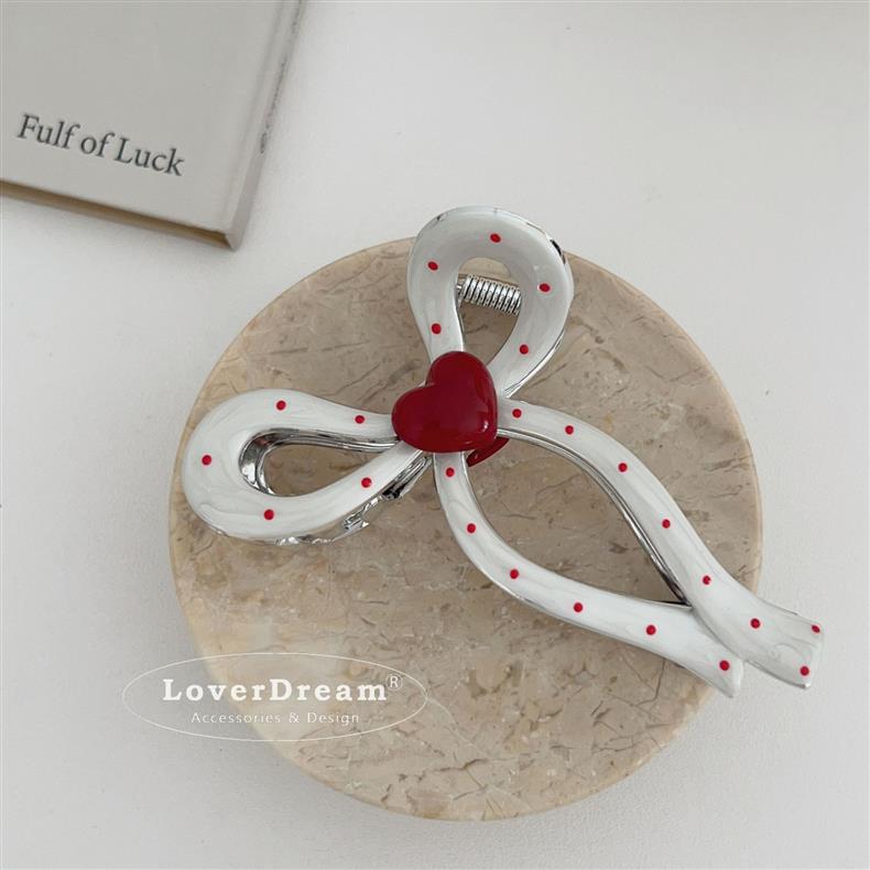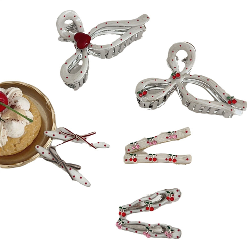 ins新年圣诞红色爱心蝴蝶结樱桃发夹可爱波点抓夹发饰女