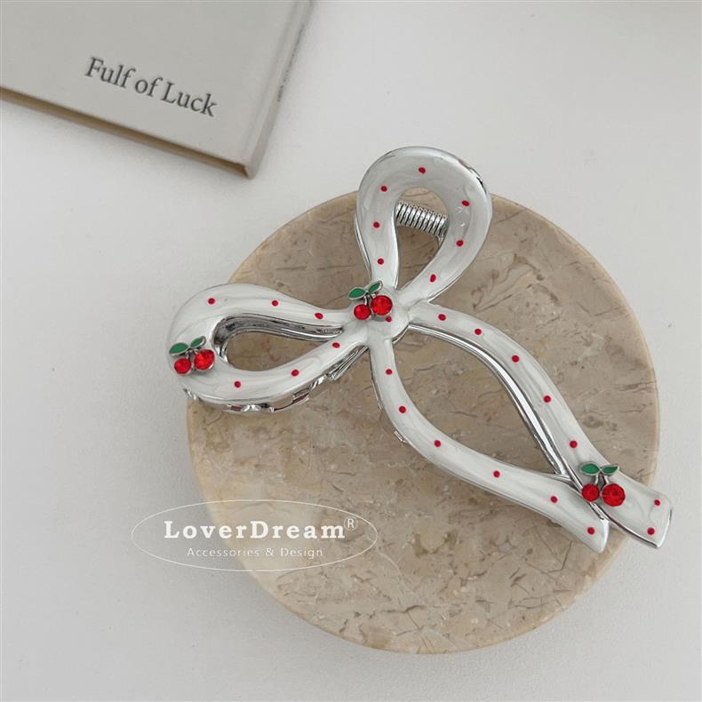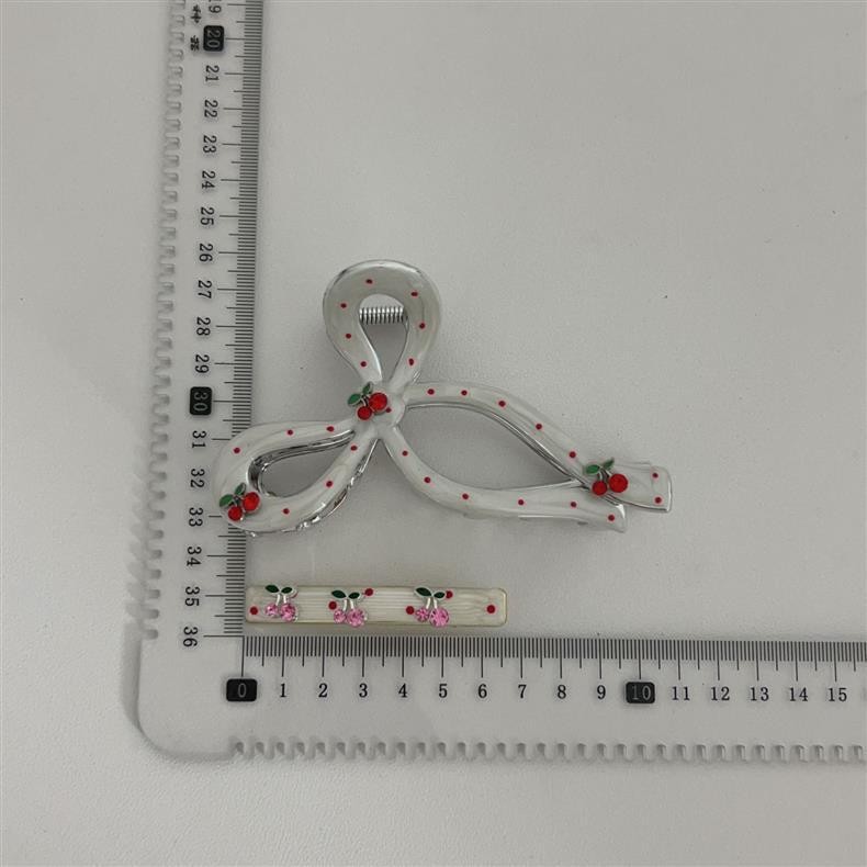 红色钻小樱桃滴油波点蝴蝶结抓夹