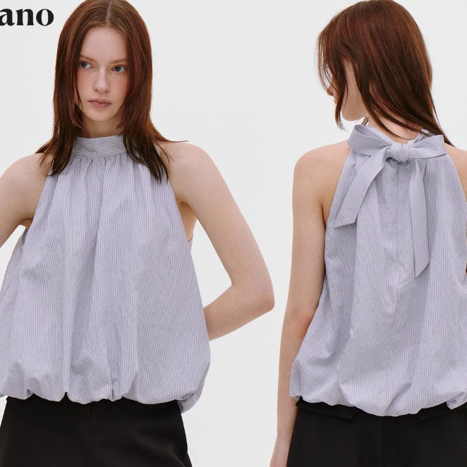 清凉氧气感条纹花苞飘带挂脖吊带背心女上衣2025夏季