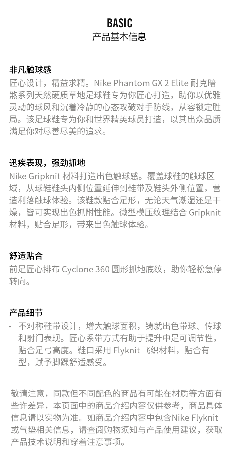NIKE官方OUTLETS 暗煞系列PHANTOM GX 2 ELITE FG男足球鞋FJ2559