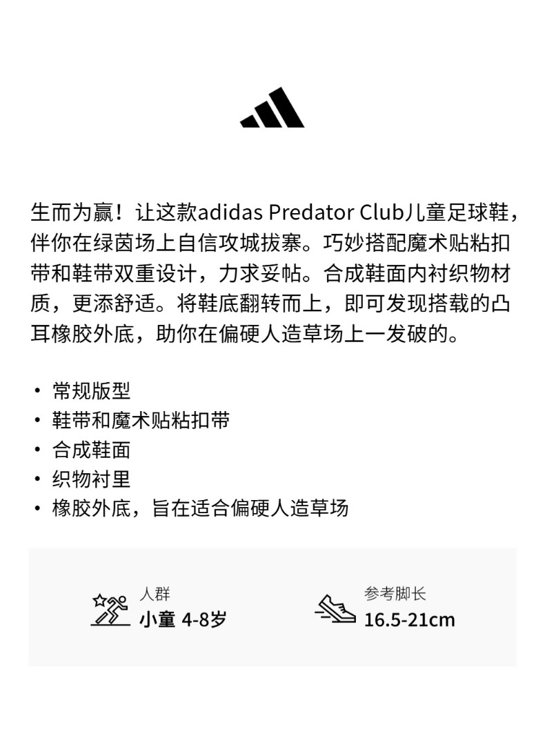 PREDATOR CLUB H&L TF人草室外硬地碎钉足球鞋小童adidas阿迪达斯