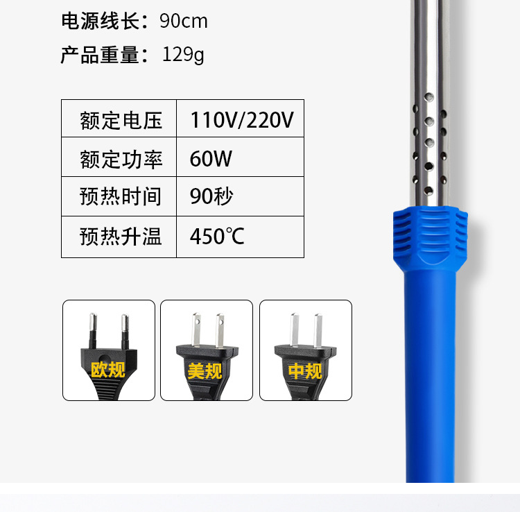 - 单支60w外热电烙铁蓝色(圆孔打孔专用)美规110V