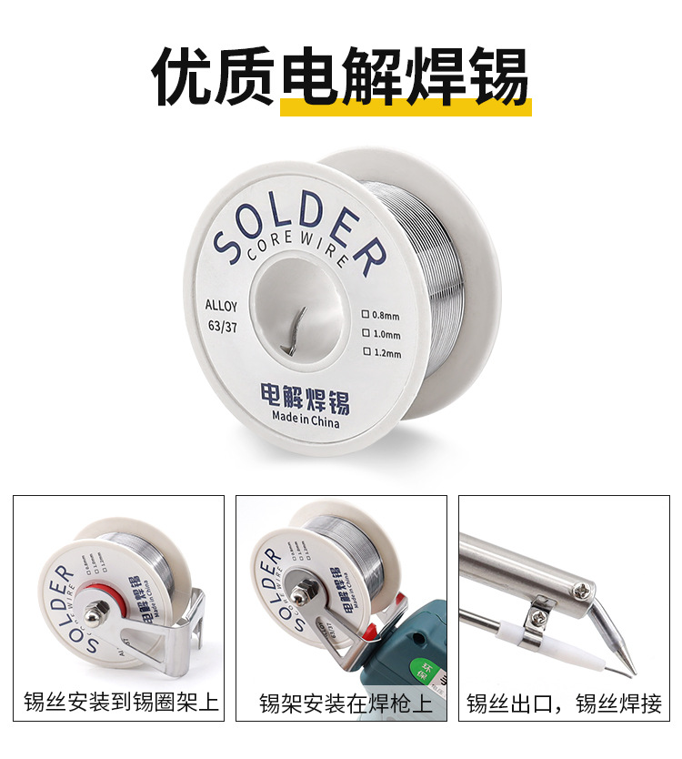 - 【黑色】中规220V外热式焊锡枪+半铝吸锡器+尖嘴镊子+弯嘴镊子+50g锡丝(白色标签)