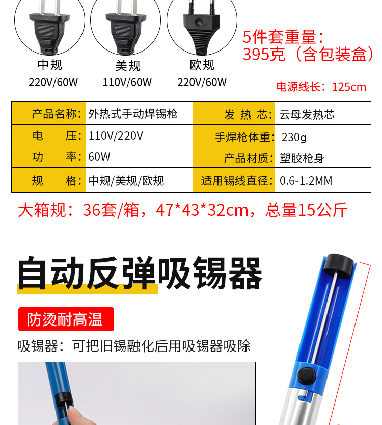 手持式60W电烙铁焊锡枪英规美规中规家用电铬铁焊接工具