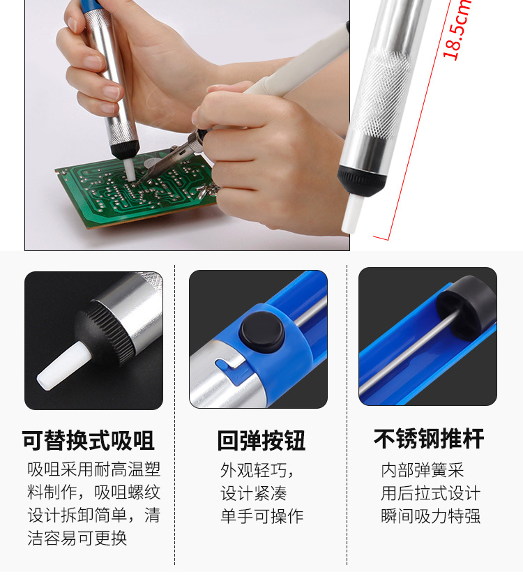 - 【黑色】欧规220V外热式焊锡枪+半铝吸锡器+尖嘴镊子+弯嘴镊子+50g锡丝(白色标签)