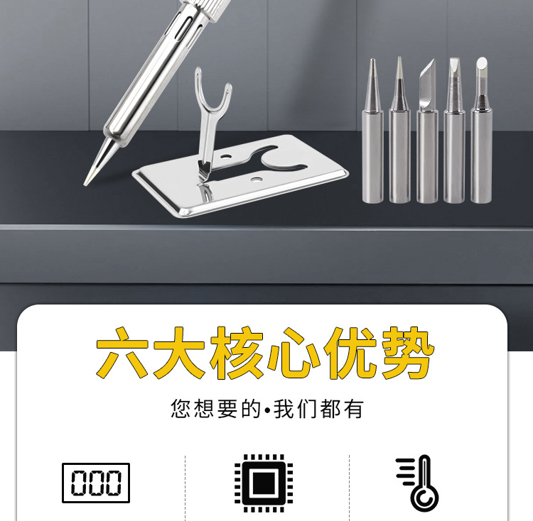3件套:中规220V/60W数显110电烙铁+烙铁头*5支+Y烙铁架