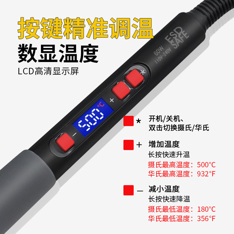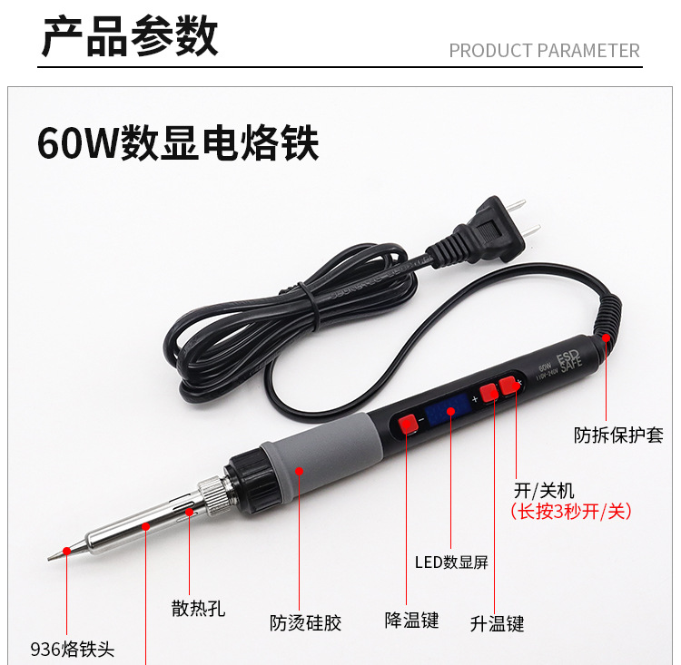 3件套:美规110V/60W数显110电烙铁+烙铁头*5支+Y烙铁架