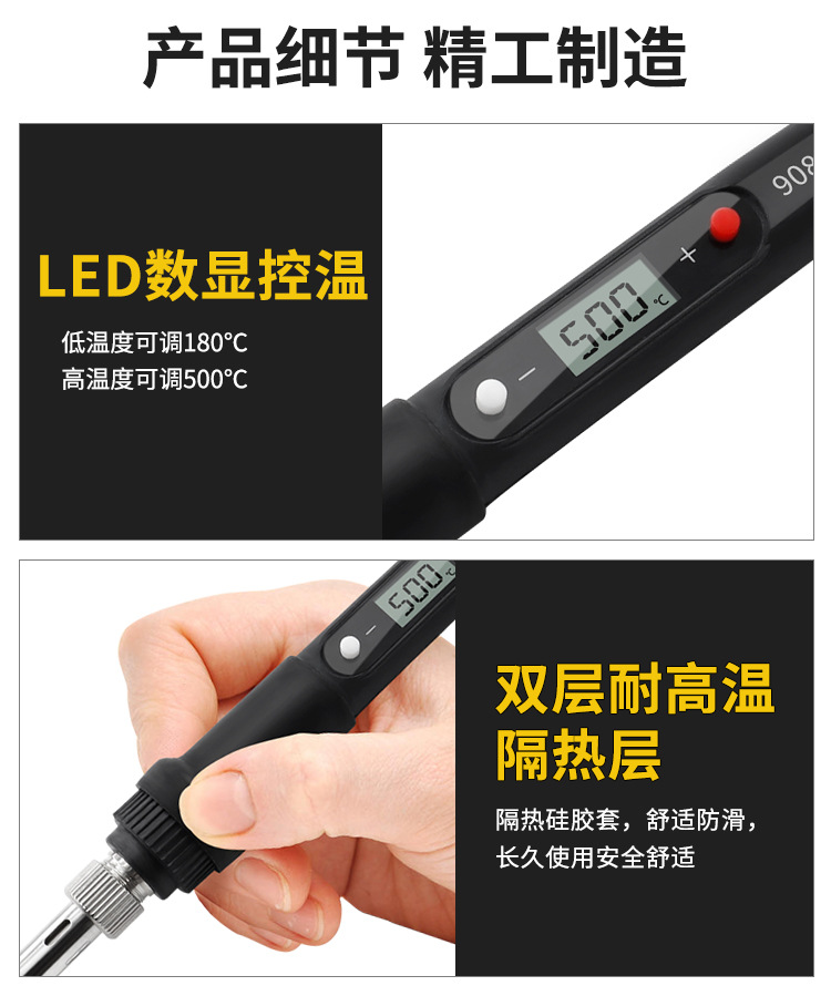 - 【美规11件套】908S电烙铁+5支烙铁头+海绵+笔筒焊丝+弯镊+蓝吸锡器+Y烙铁架