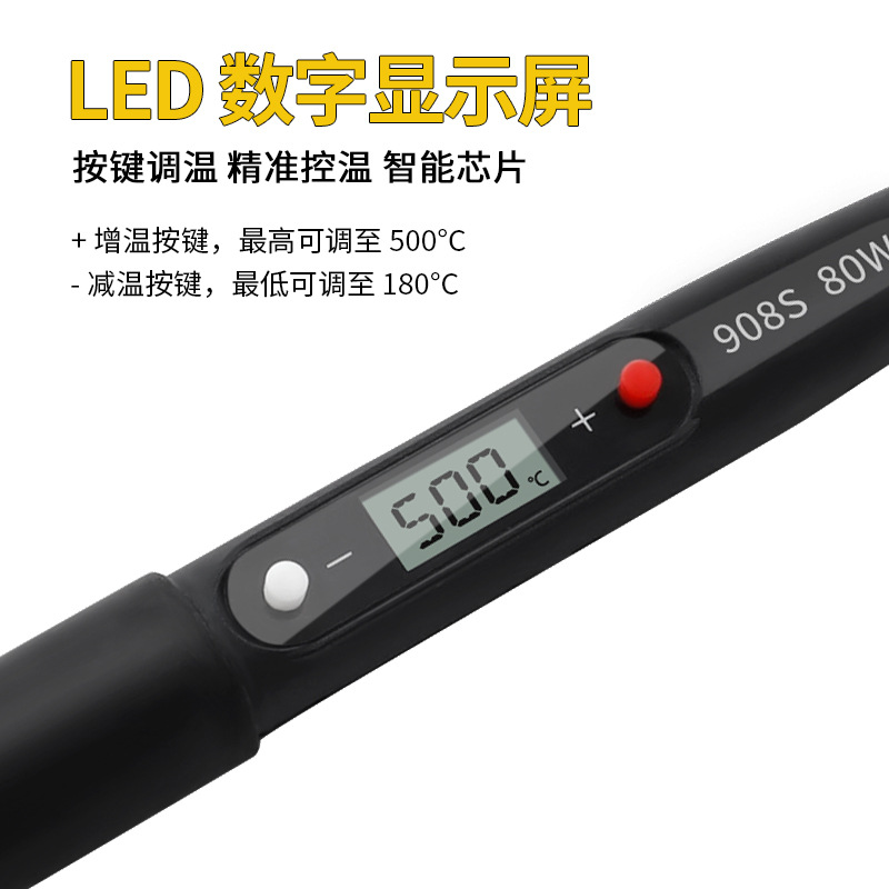 - 【中规11件套】908S电烙铁+5支烙铁头+海绵+笔筒焊丝+弯镊+蓝吸锡器+Y烙铁架