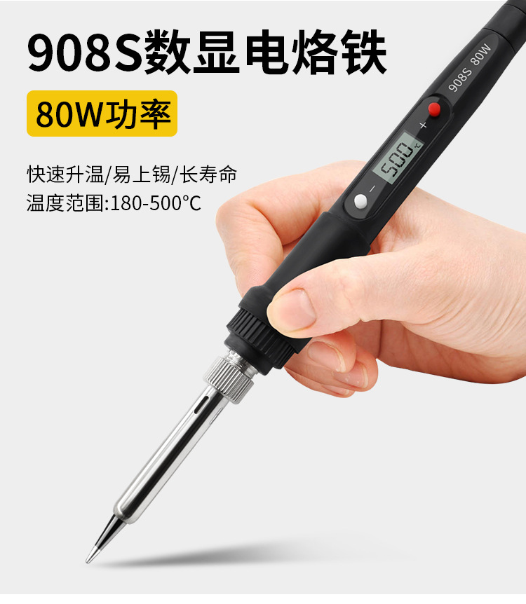- 【中规15件套】908S烙铁+5支头+海绵+笔焊丝+弯镊+蓝吸锡器+A烙铁架+剥线刀+2线+包