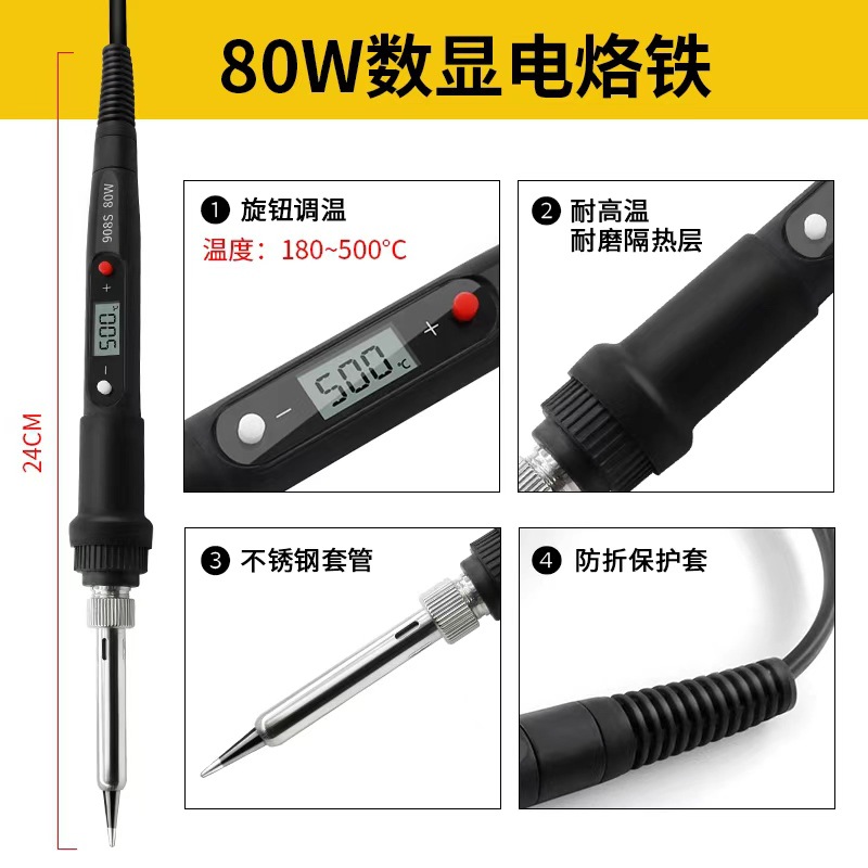 可调温电烙铁80W家用维修电洛铁欧规220V电焊笔工具包套装