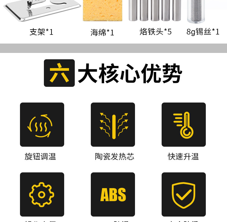 - 【8件套】澳规60W/220V906烙铁+5支烙铁头+Y烙铁架+海绵