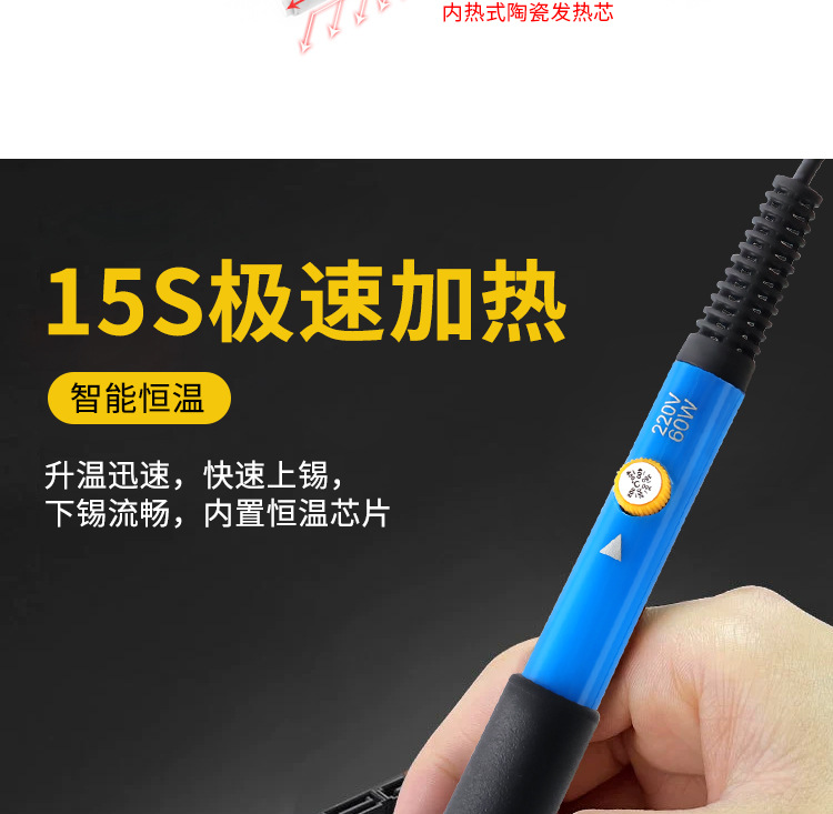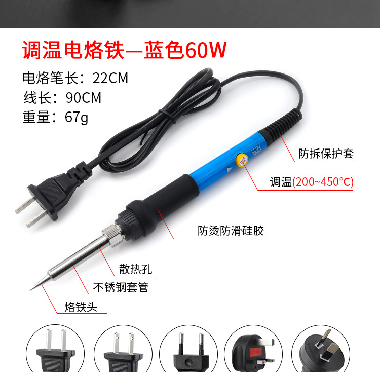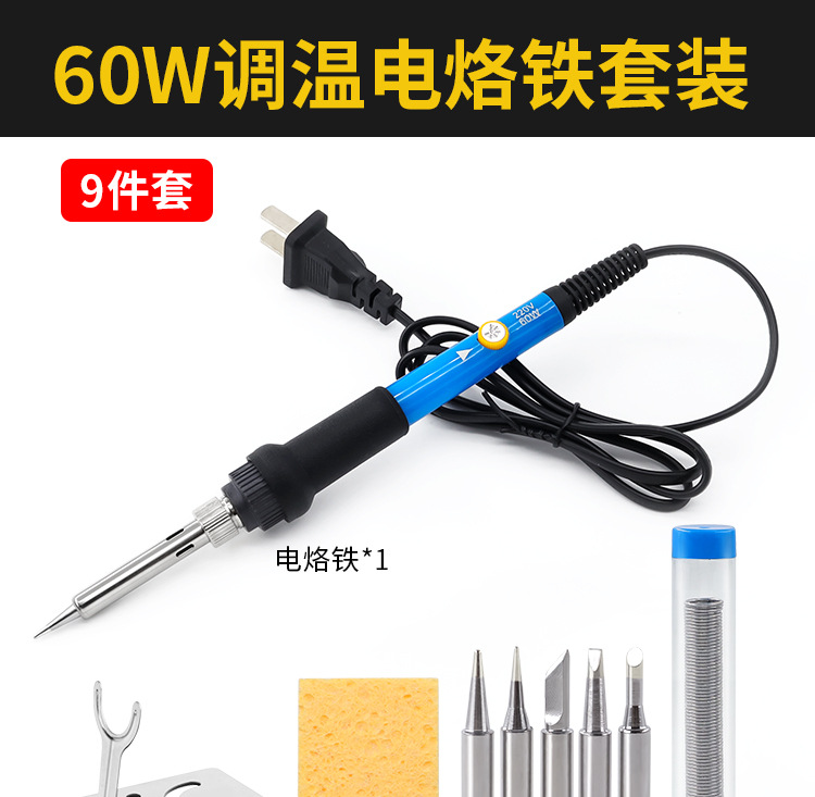 - 【9件套】欧规60W/220V906烙铁+5支烙铁头+Y烙铁架+海绵+8g锡线