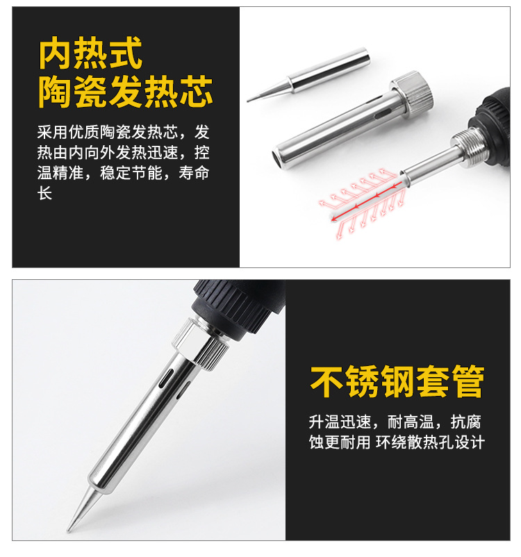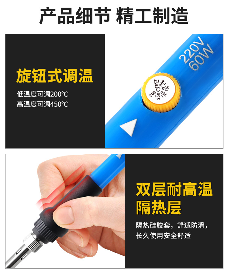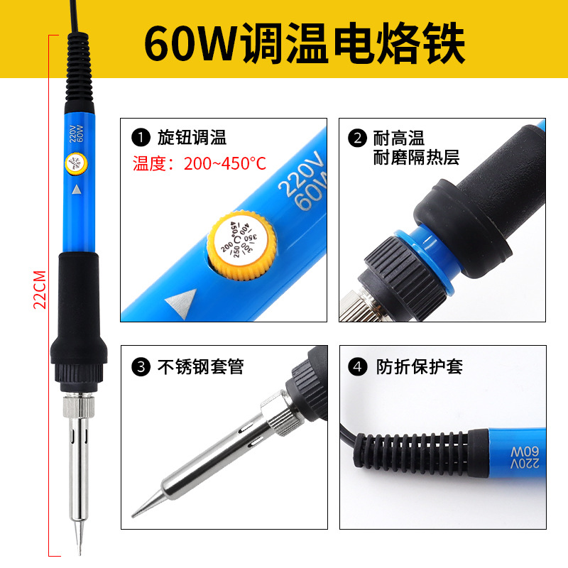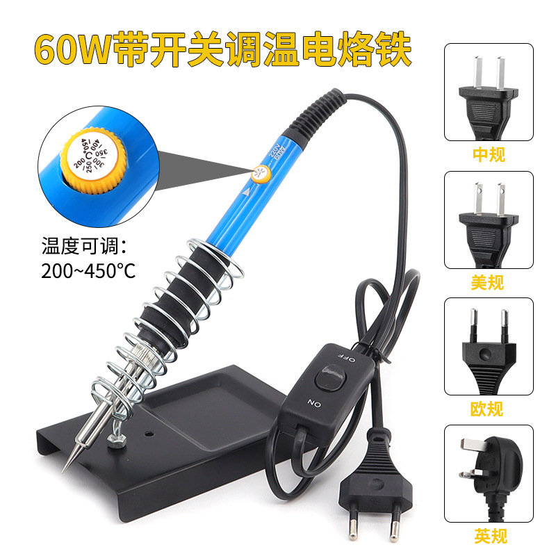 可调温电烙铁60W家用维修焊锡笔带开关美规电洛铁工具包套装