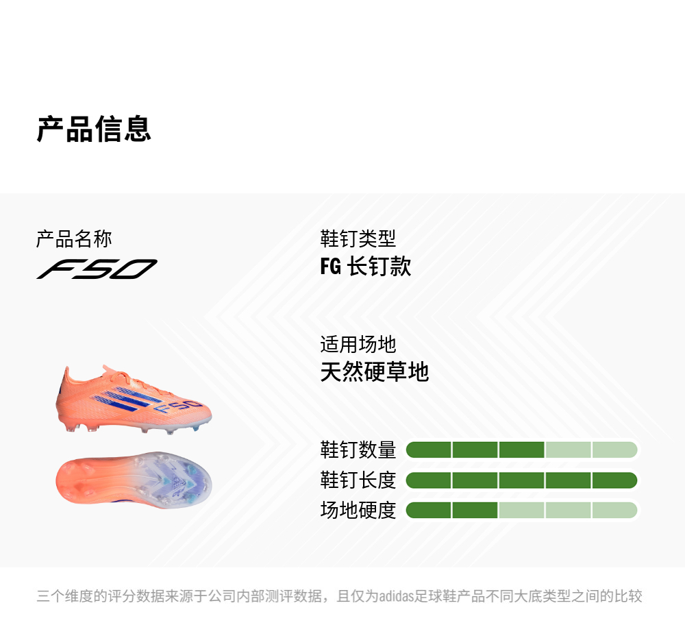 男大童F50 ELITE FG J天然硬草地长钉系带款足球鞋adidas阿迪达斯