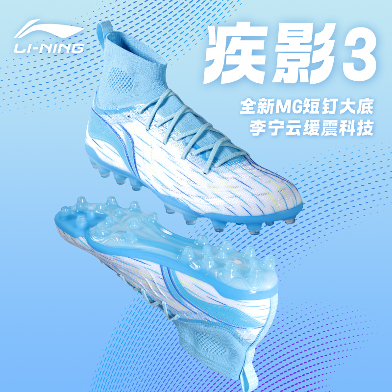 李宁疾影3足球鞋男款青少年成人高帮MG短钉TF碎钉专业训练专用鞋
