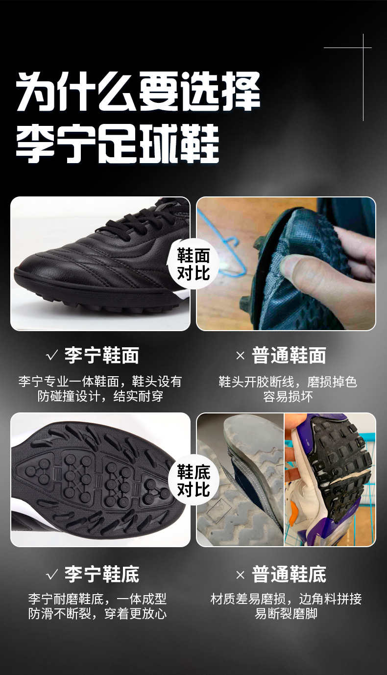 李宁足球鞋男款碎钉tf成人训练专用比赛专业球鞋女短钉透气正品新