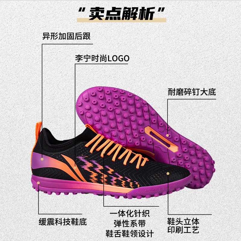 李宁疾影足球鞋男款成人TF碎钉青少年专业比赛训练专用正品人造草