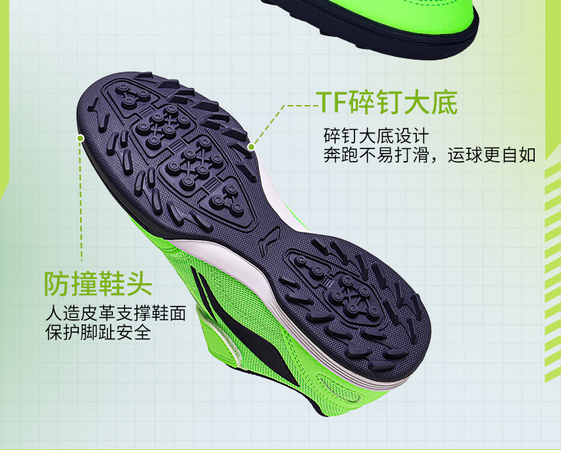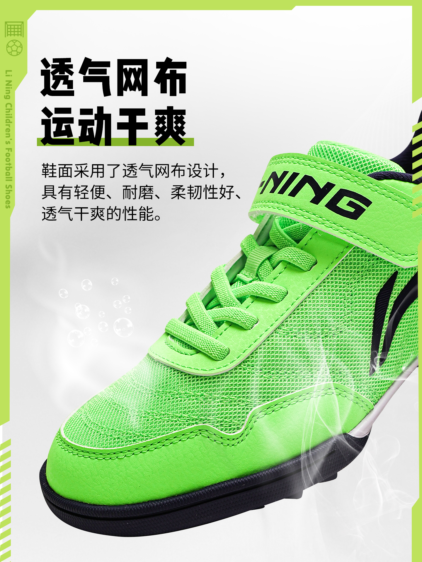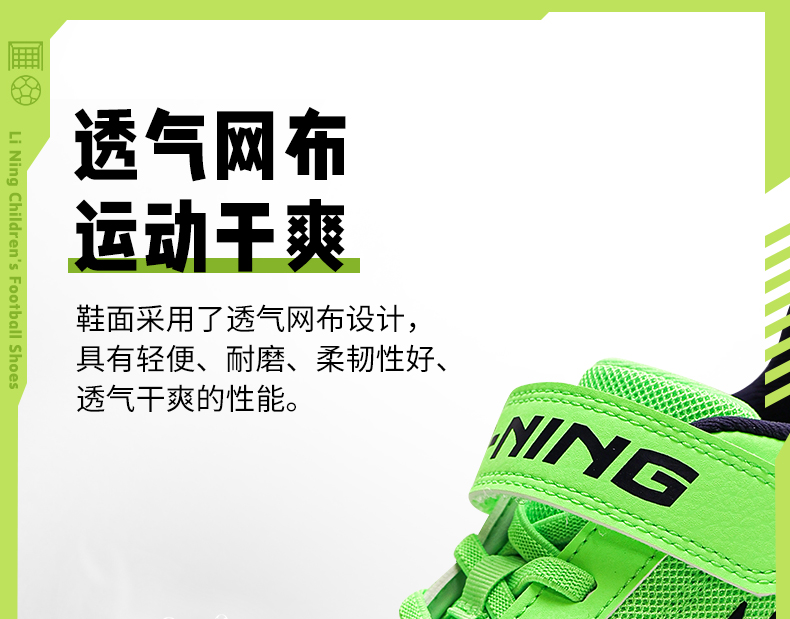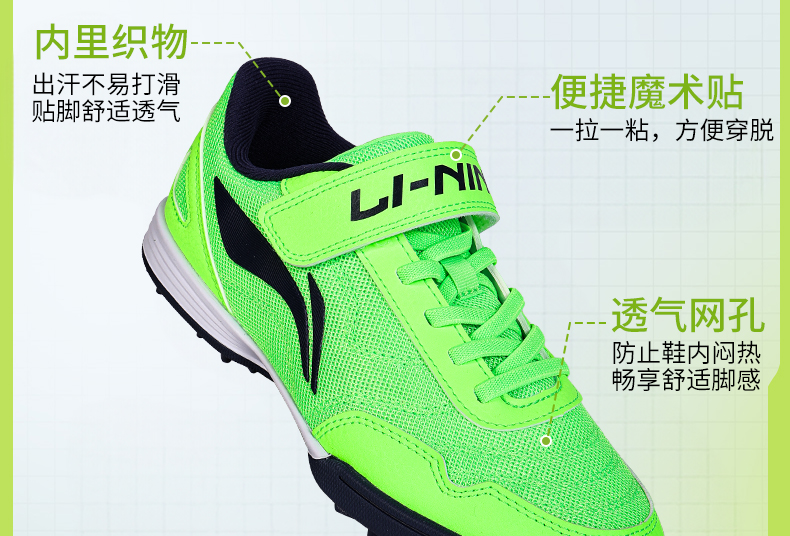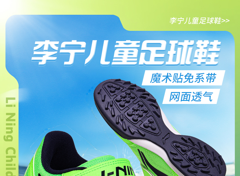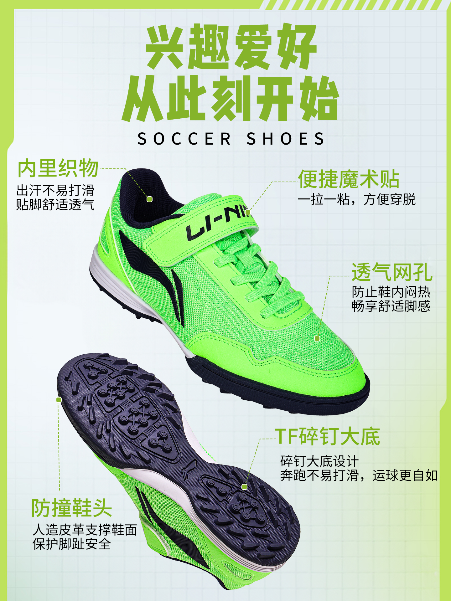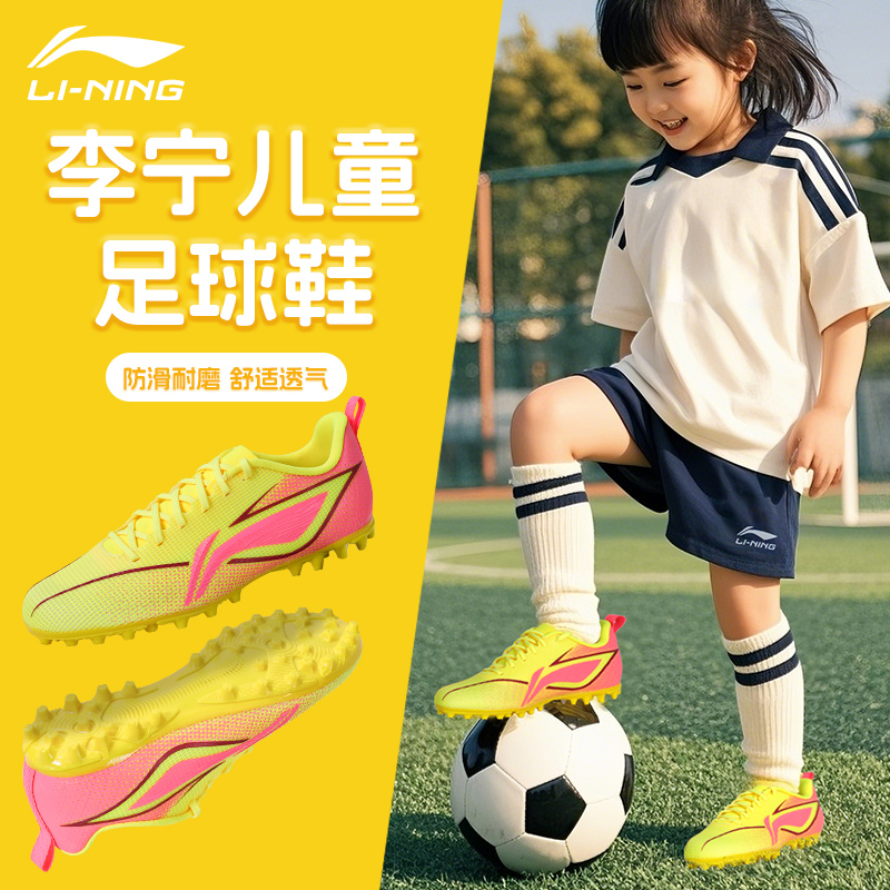 李宁儿童足球鞋男童小学生TF碎钉青少年女孩少儿专业训练比赛专用