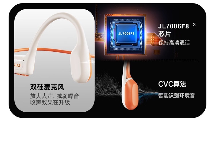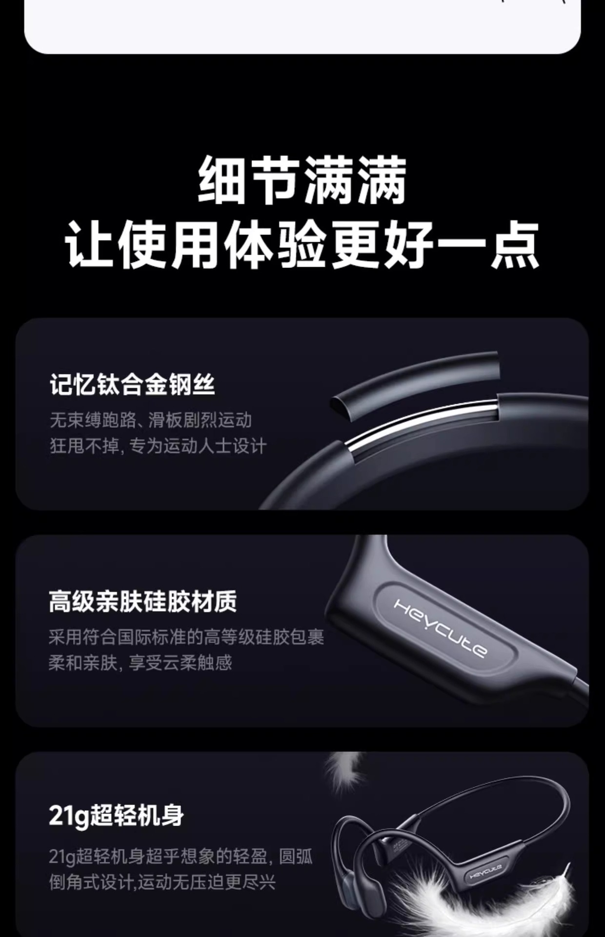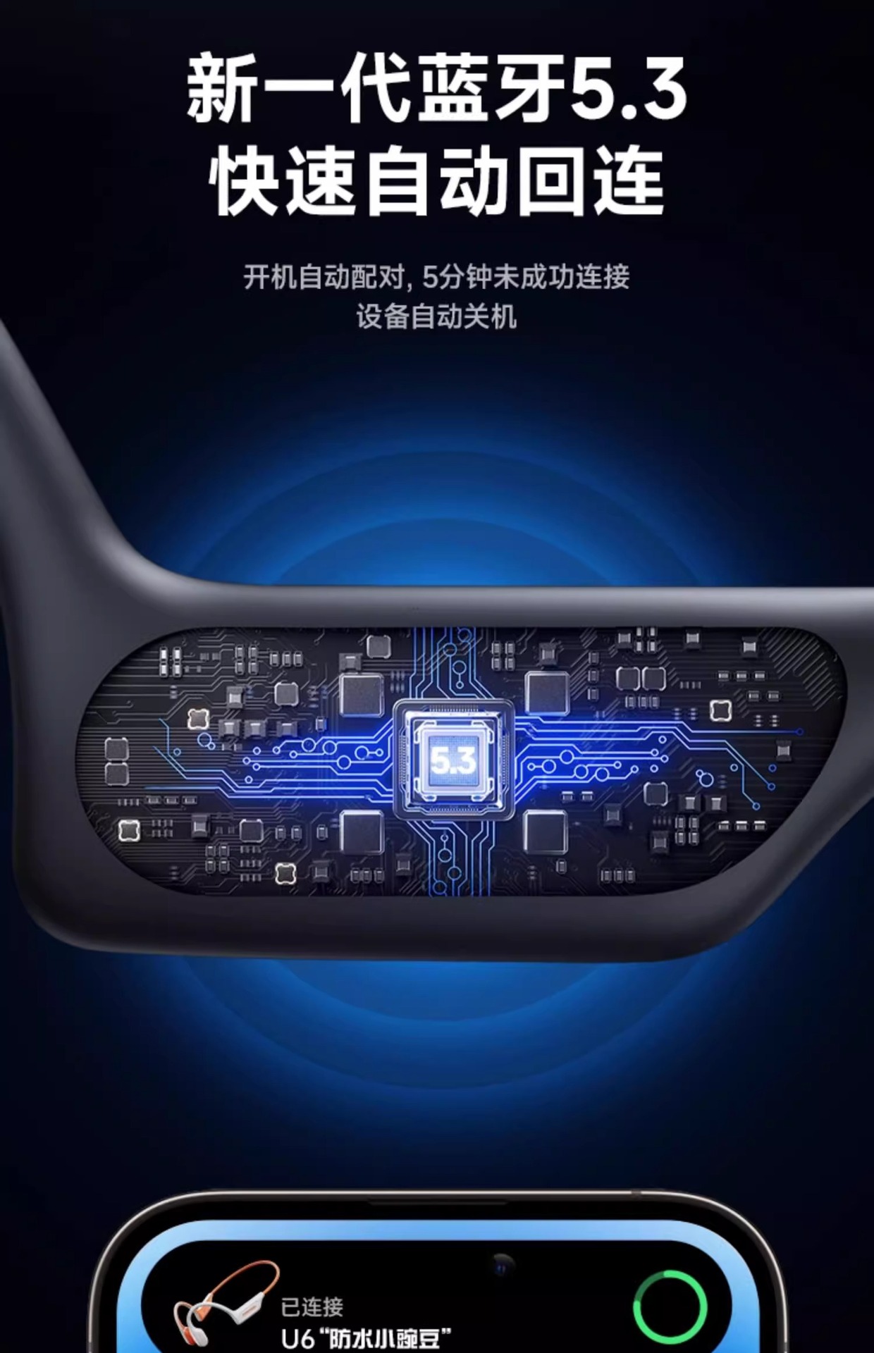 黑啾U6骨传导挂脖式无线蓝牙耳机大电池长续航IP68户外运动2025