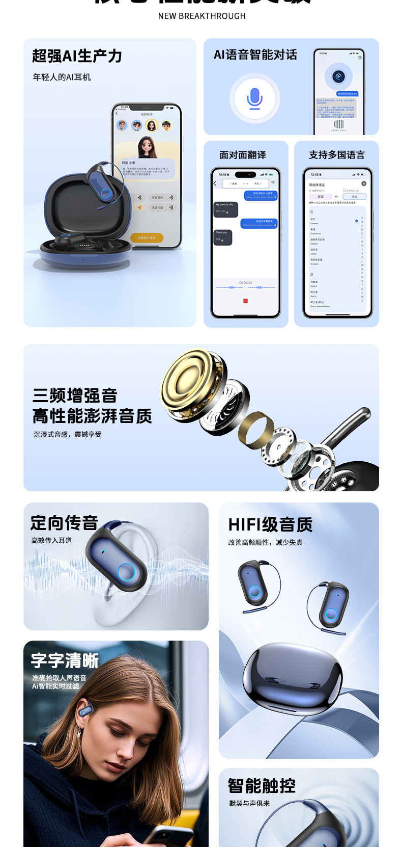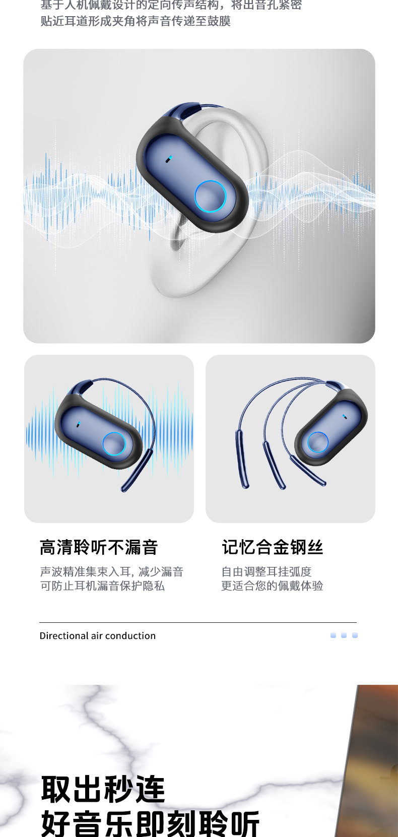 挂耳式OWS不入耳降噪蓝牙无线蓝牙耳机TWS可旋转130°