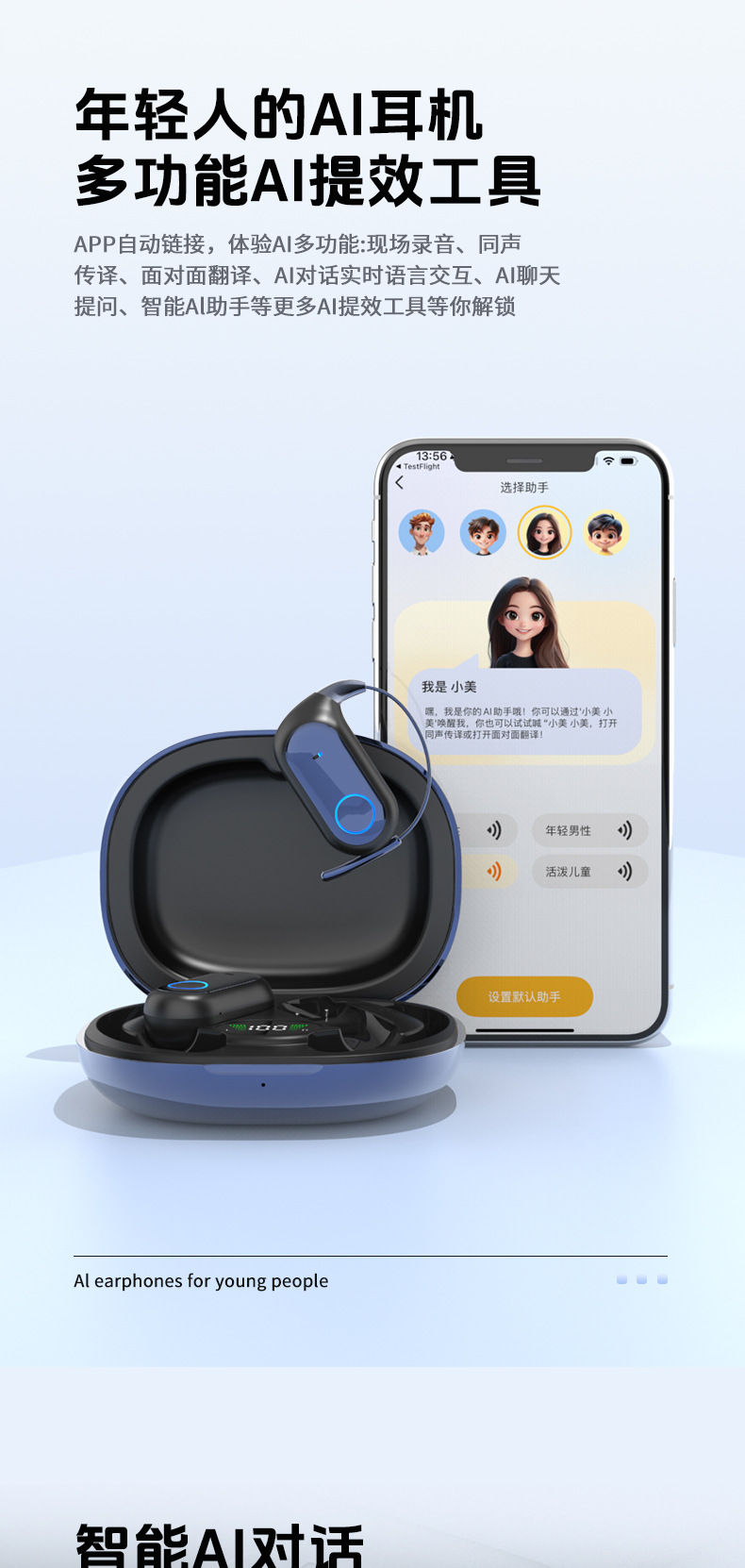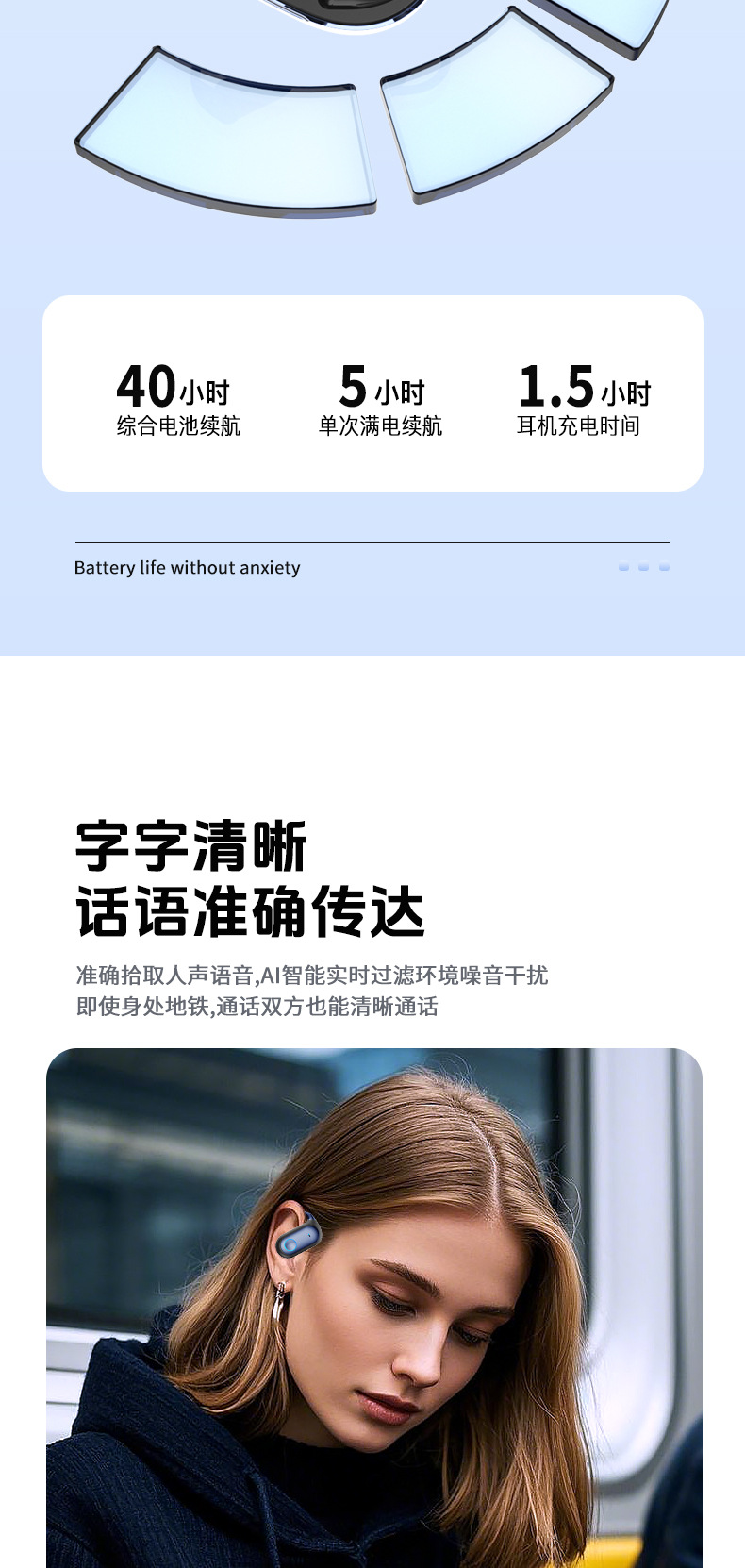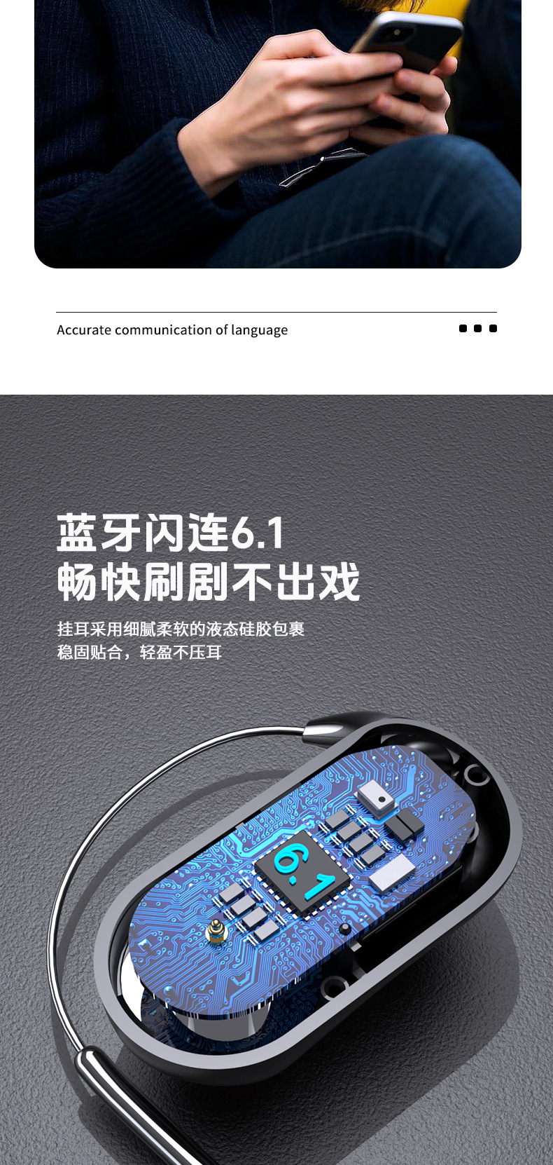 蓝牙耳机同声传译挂耳式耳机无线运动超长续航电量