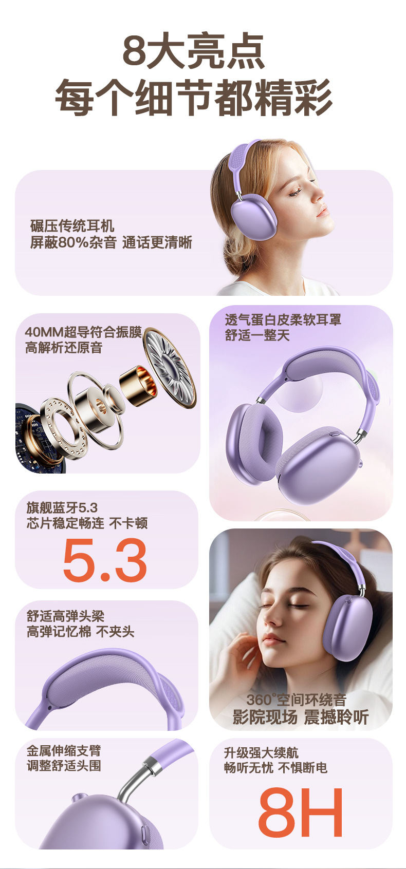 新品高质版P9plus降噪头戴式华强北耳机无线蓝牙耳麦