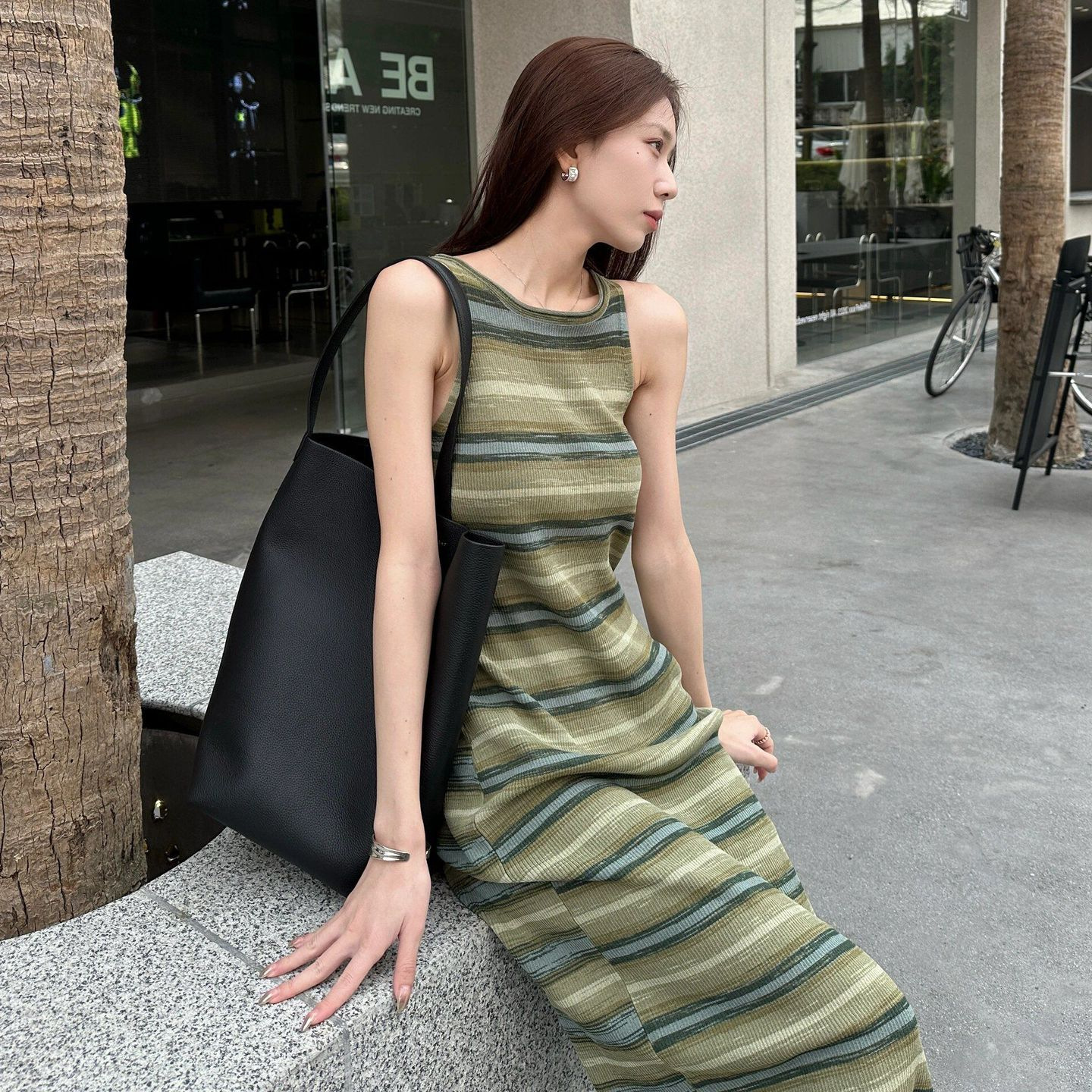 温柔风修身条纹长款背心裙女装新款夏款独特超好看针织连衣裙