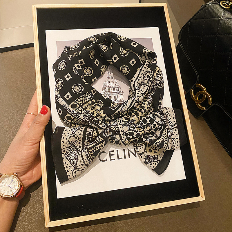 100%桑蚕丝女百搭纯款洋气素绉缎真丝女春季薄款飘带领巾