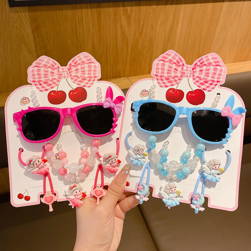 儿童墨镜发夹7件套小女孩彩色百搭串珠项链手链女童头饰发饰套装