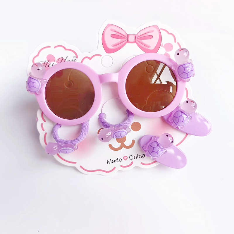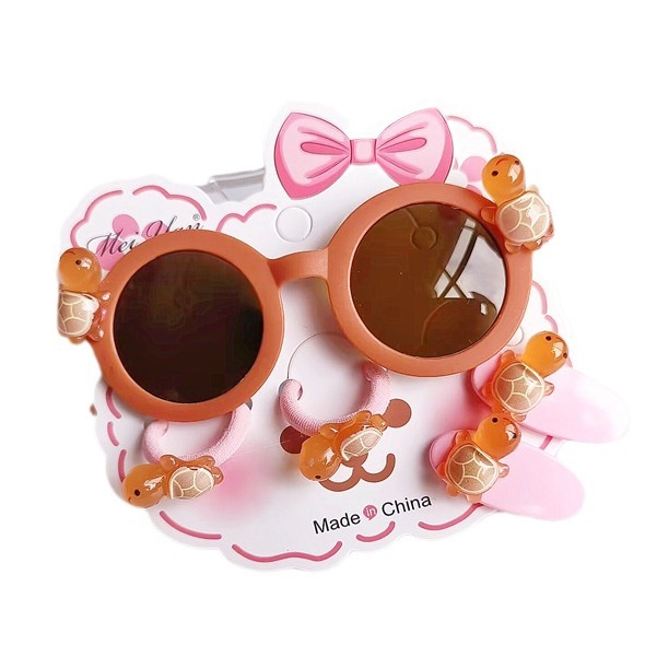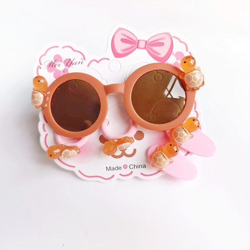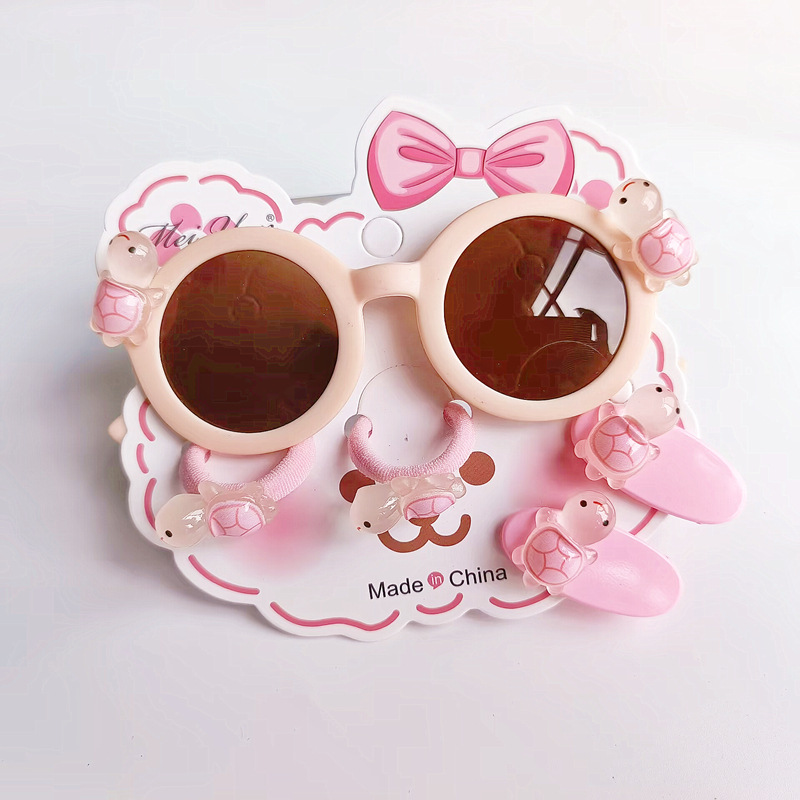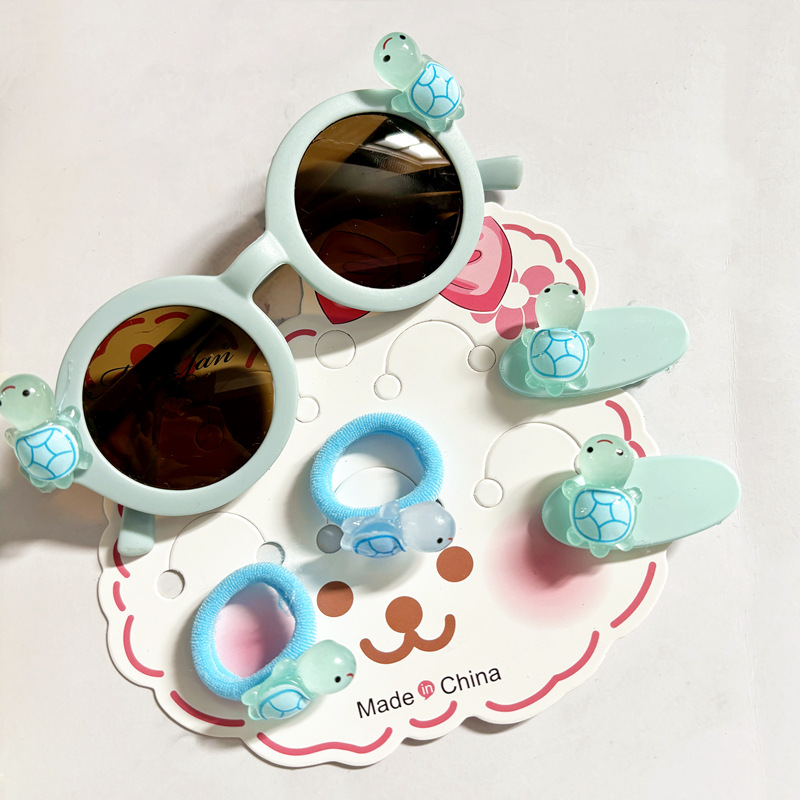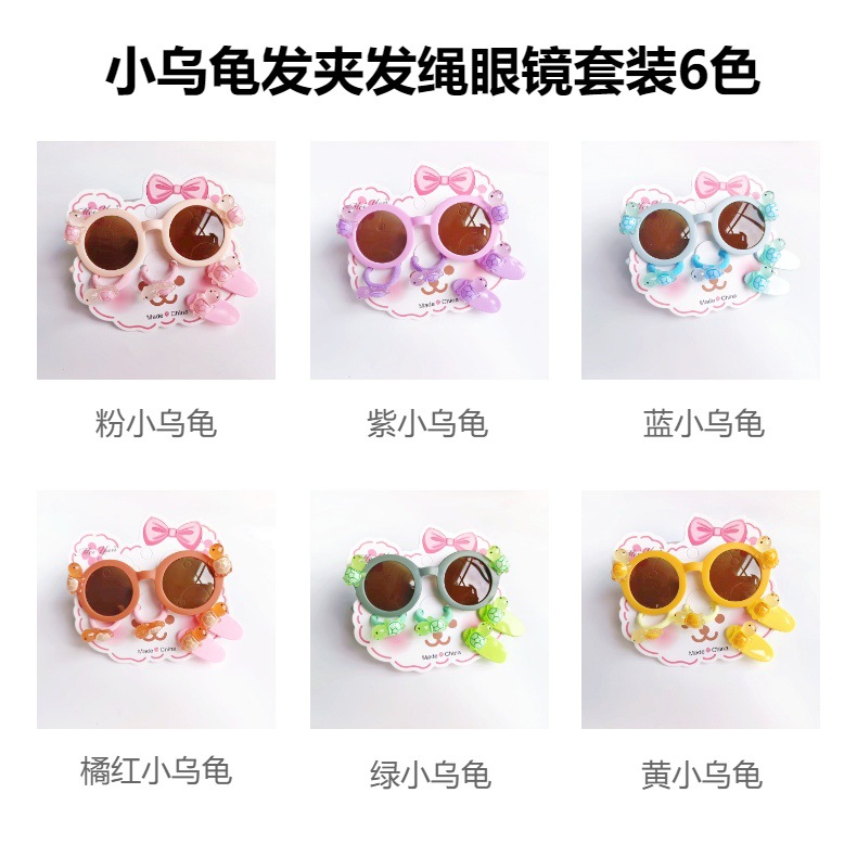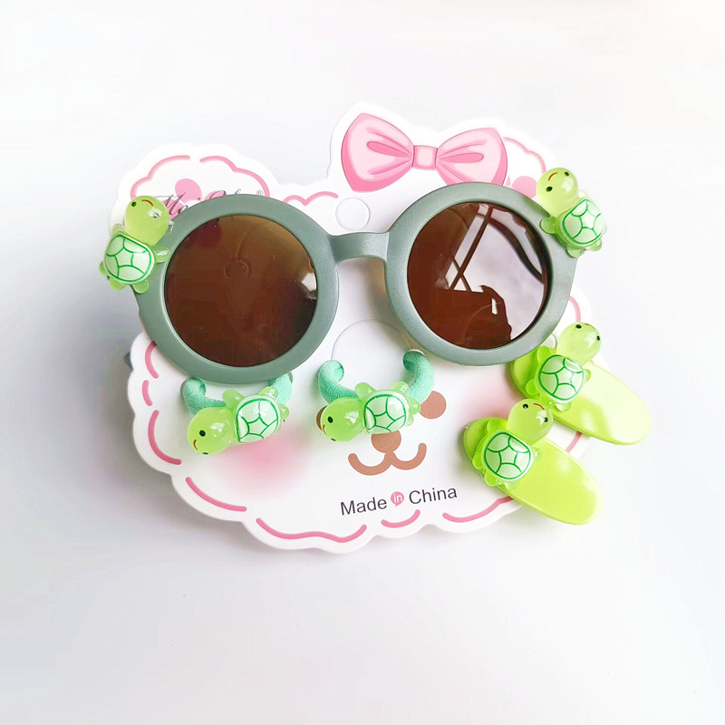 儿童夏小乌龟卡通墨镜发绳套装宝宝可爱5件组合礼品防紫外线眼镜