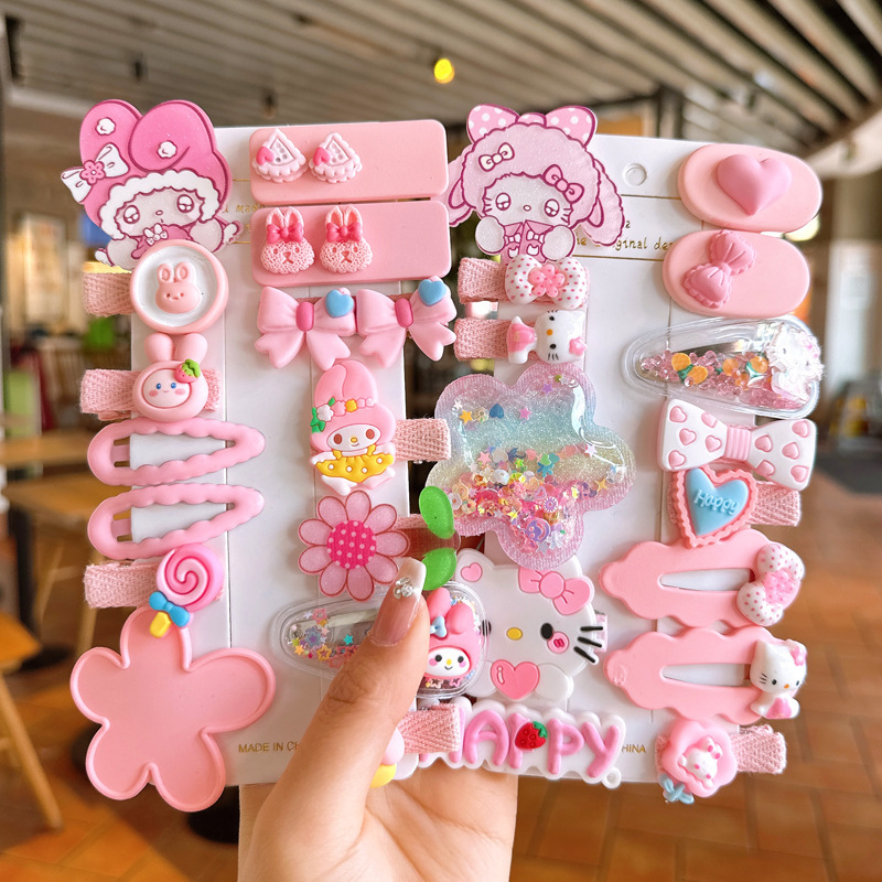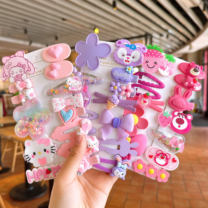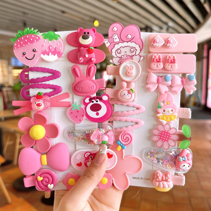 女童14件套草莓熊发夹星黛露发卡咖啡色刘海夹女孩碎发夹子