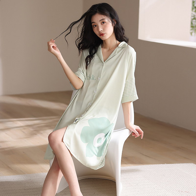 睡裙女夏天冰丝高个子衬衫睡衣女加长版175甜美新款家居服夏
