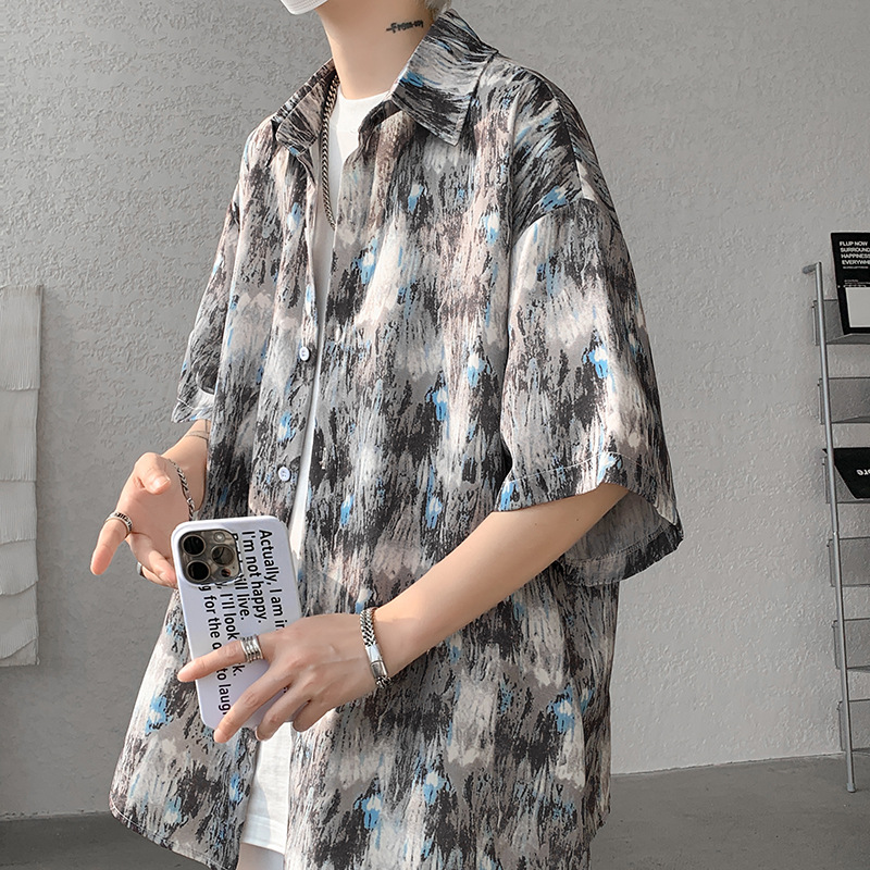 新款男士大码短袖衬衫 港味冰丝顺滑宽松版休闲衬衣男
