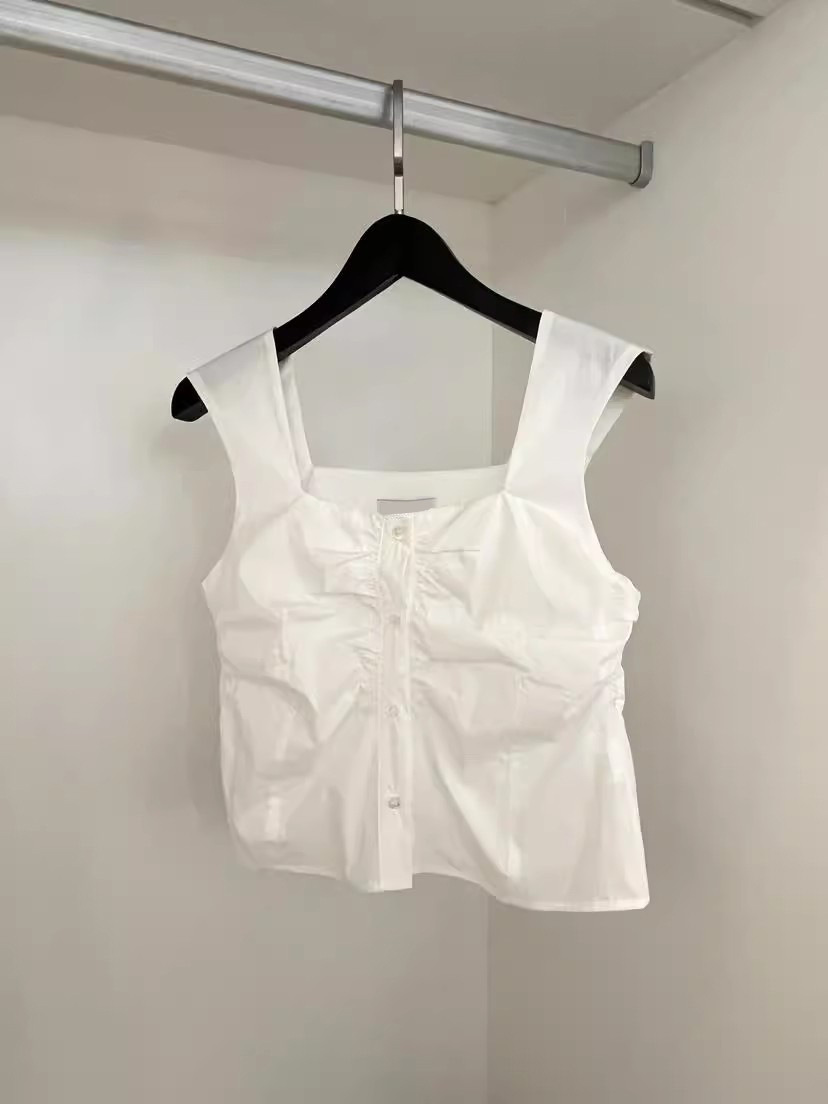夏季新款气质修身无袖方领单排扣吊带背心上衣女潮