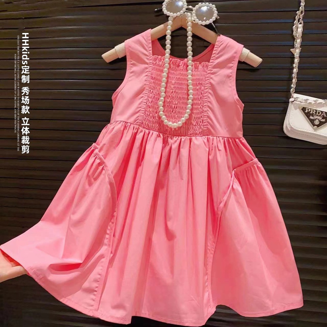 新品女童松紧大方领气质款不规则洋气公主连衣裙2025夏装中小童裙