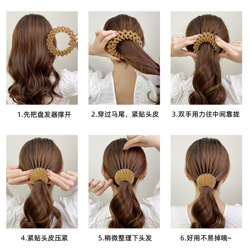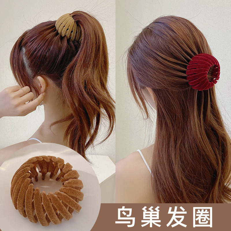 韩国丸子头发夹鸟巢抓夹懒人发夹盘发器扎高马尾固定神器植绒夹子