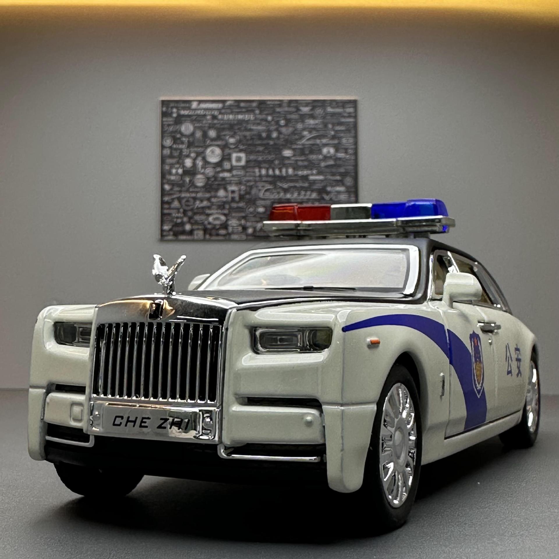 车致合金1:32劳斯幻影车模回力声光警车男孩玩具汽车音乐模型摆件