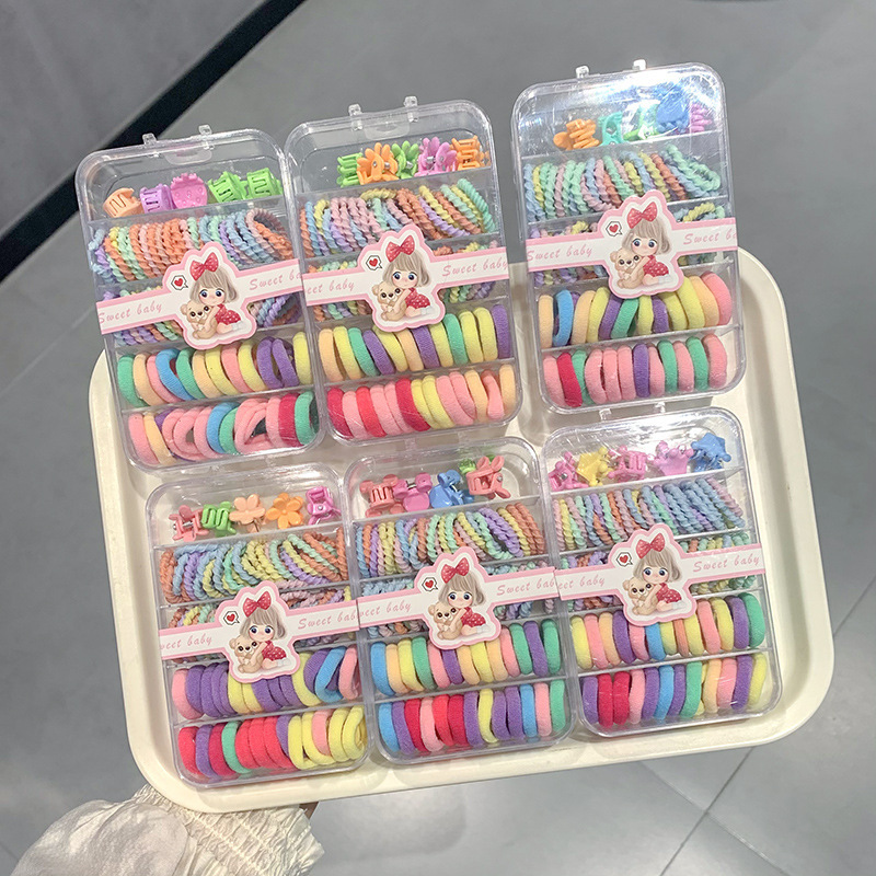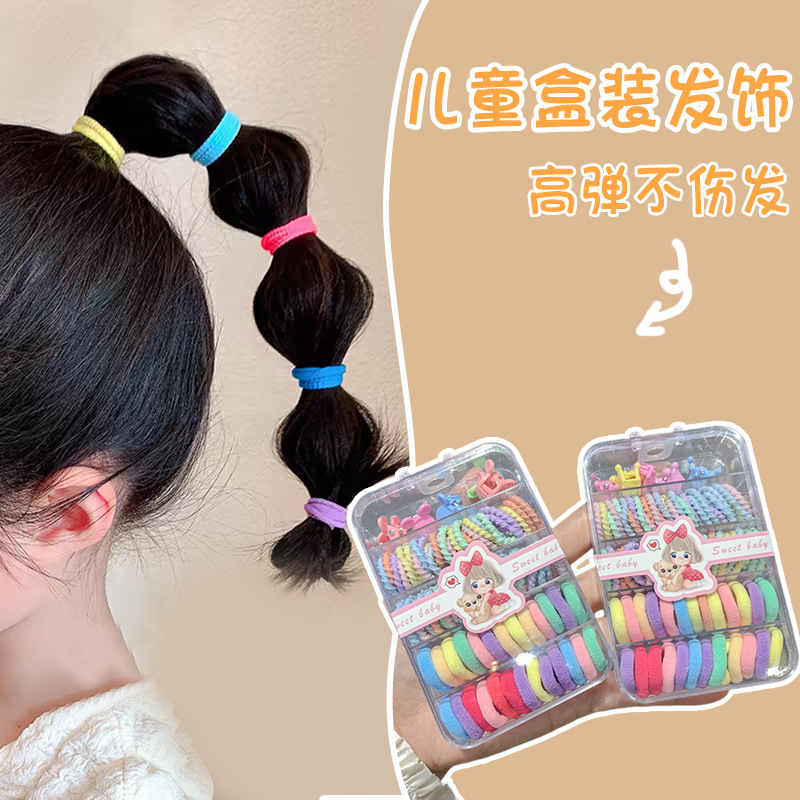 女童糖果色发绳发夹套装高弹力不伤发迷你发圈可爱宝宝橡皮筋
