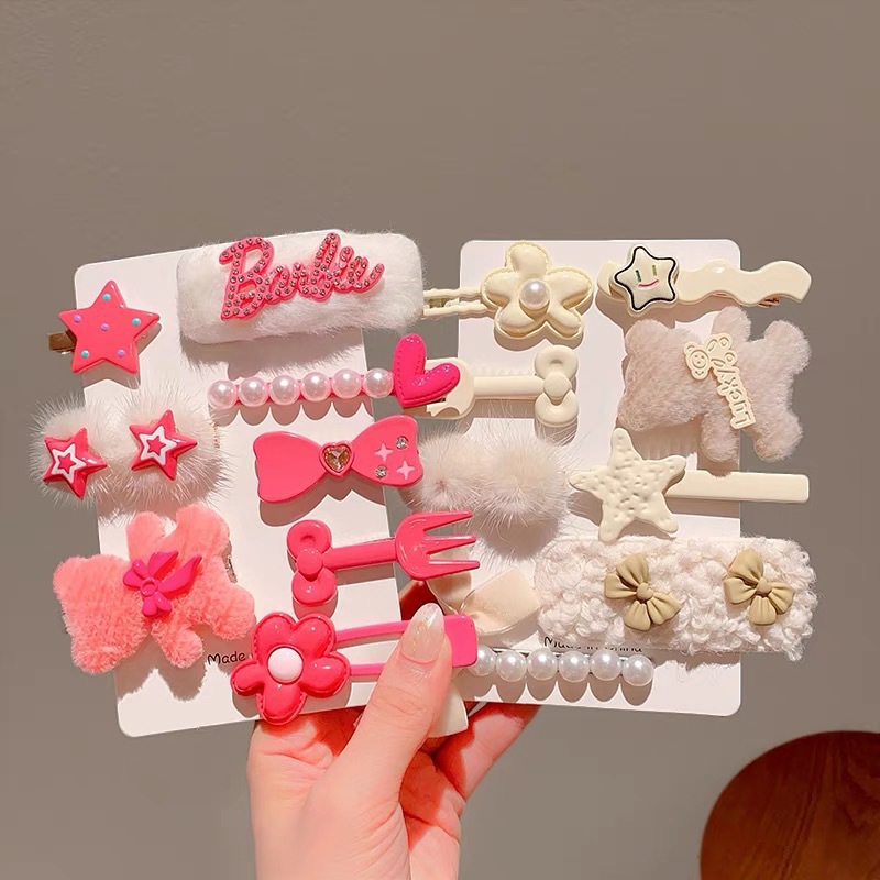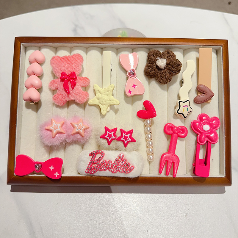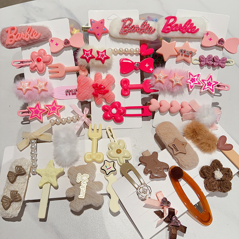新款年毛绒粉色发夹少女刘海侧边碎发发卡可爱夹子爱心发夹bb