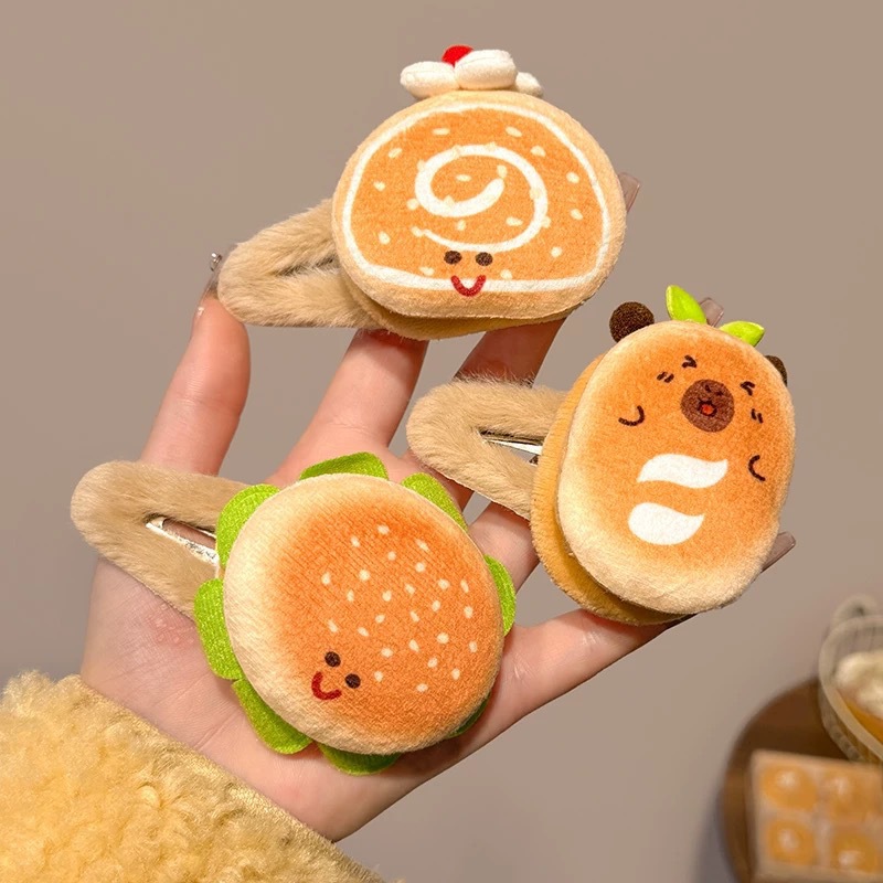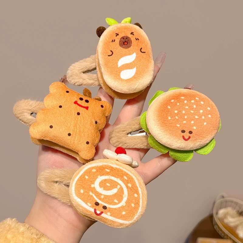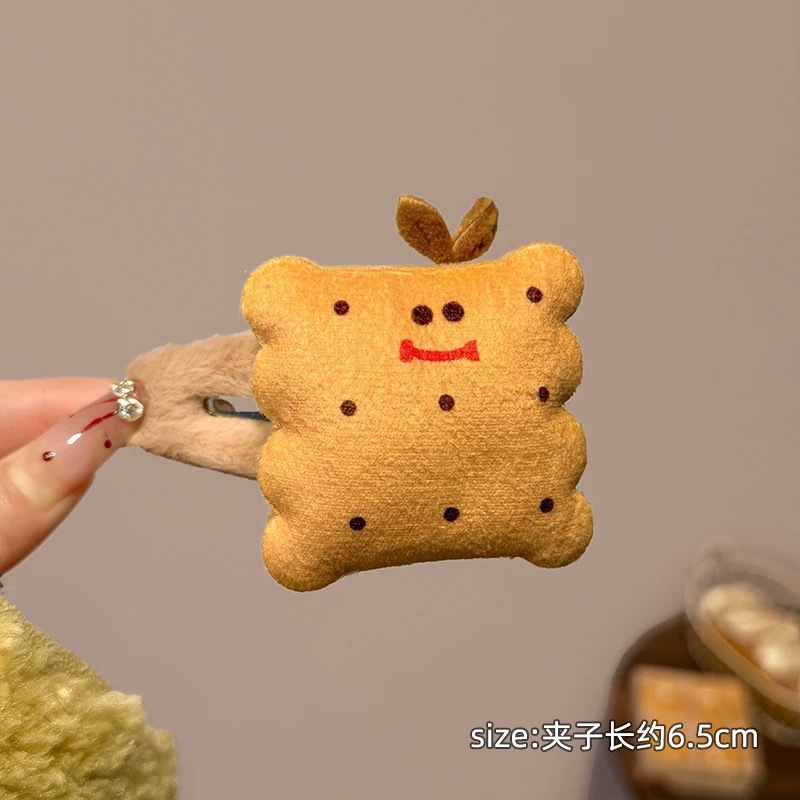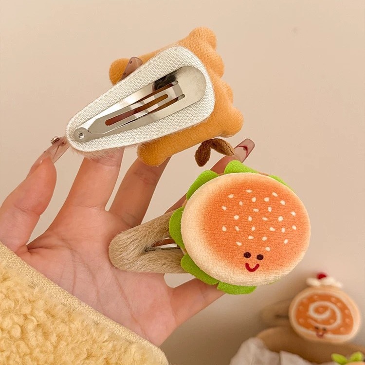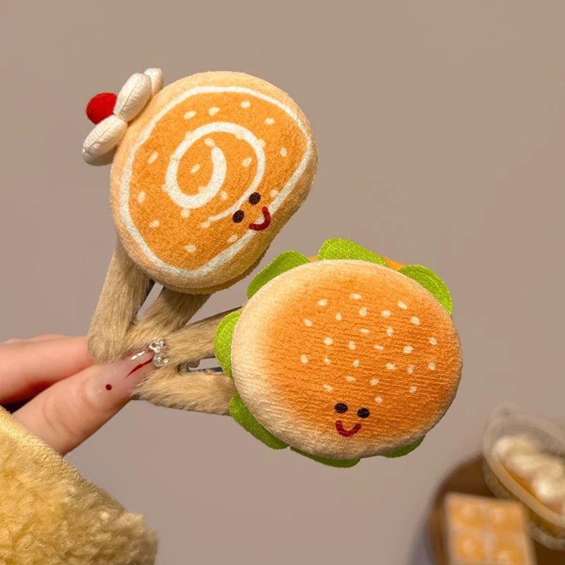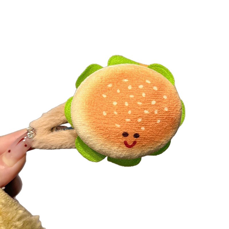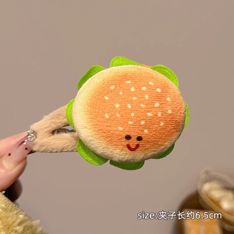 可爱卡通趣味饼干汉堡毛绒发夹女侧边刘海碎发bb夹子头饰可爱发卡