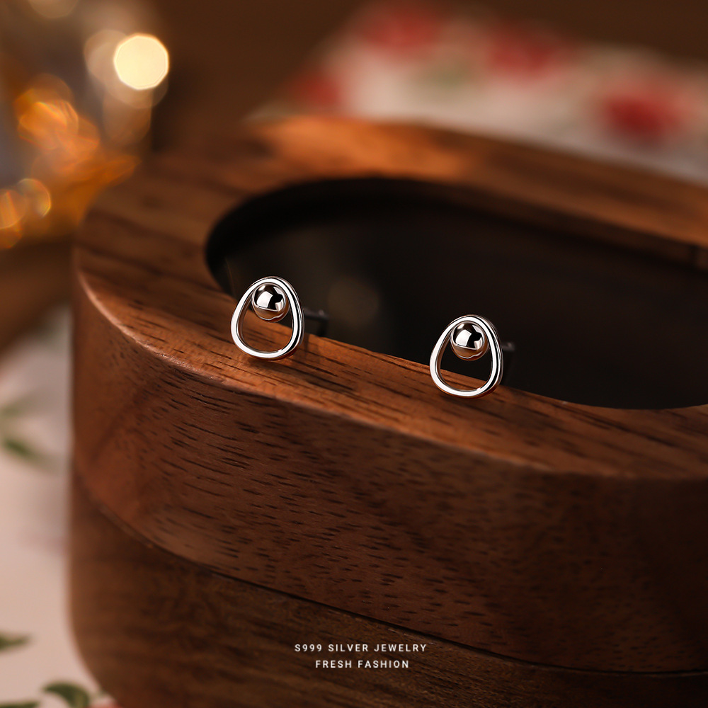 几何镂空耳钉女s999纯银小众冷淡风百搭学生足银耳饰简约首饰