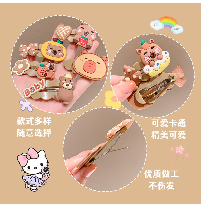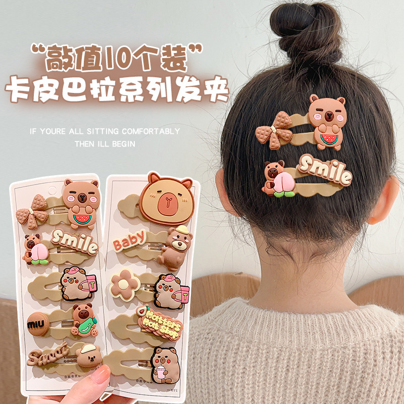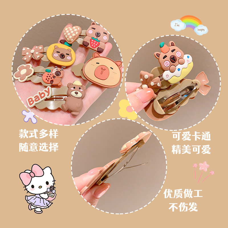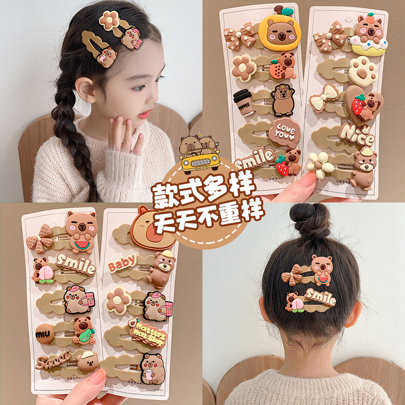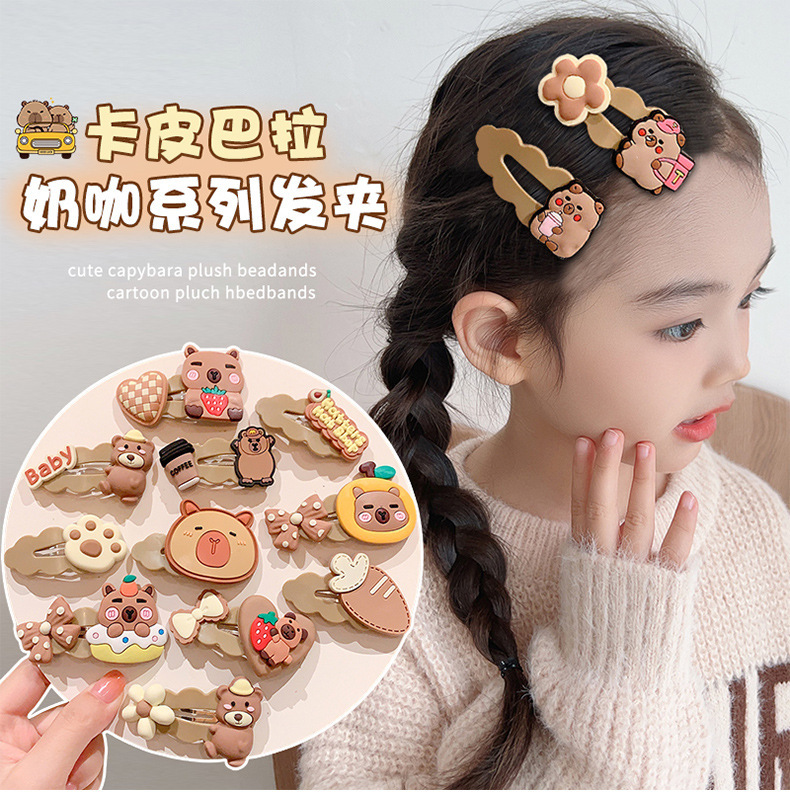 女童卡皮巴拉发夹头饰甜美女童侧边刘海碎发夹可爱宝宝超萌发卡夹