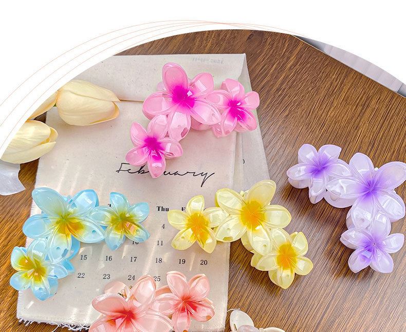 糖果色花朵发夹大号鸡蛋花抓夹后脑勺盘发鲨鱼夹海边度假发饰头饰
