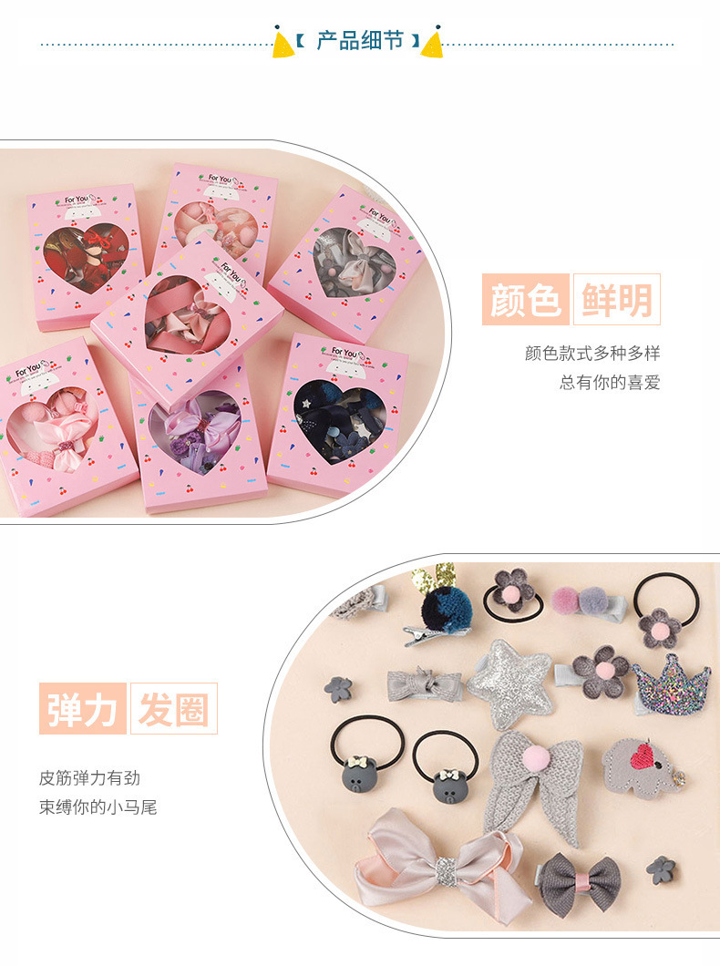 新款蝴蝶结发夹婴儿发绳不伤发礼盒套装小女孩皇冠公主发饰