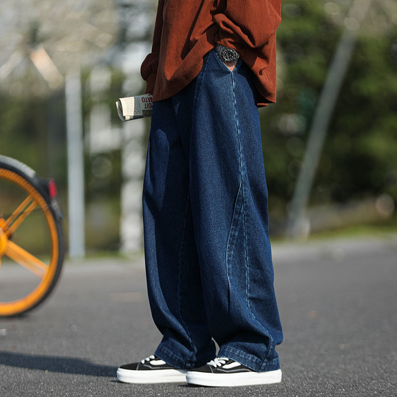 美式复古水洗牛仔裤男秋季港风潮ins百搭直筒阔腿裤宽松休闲裤子